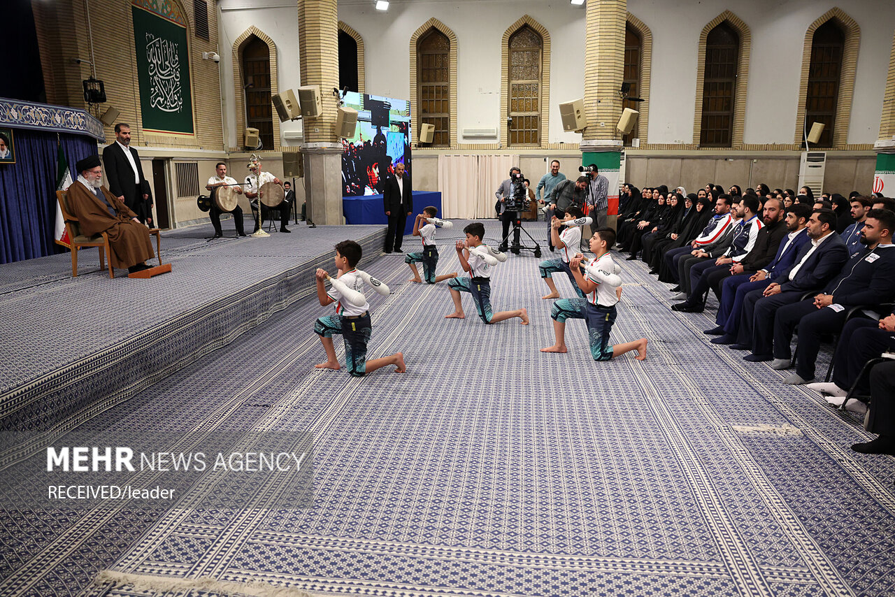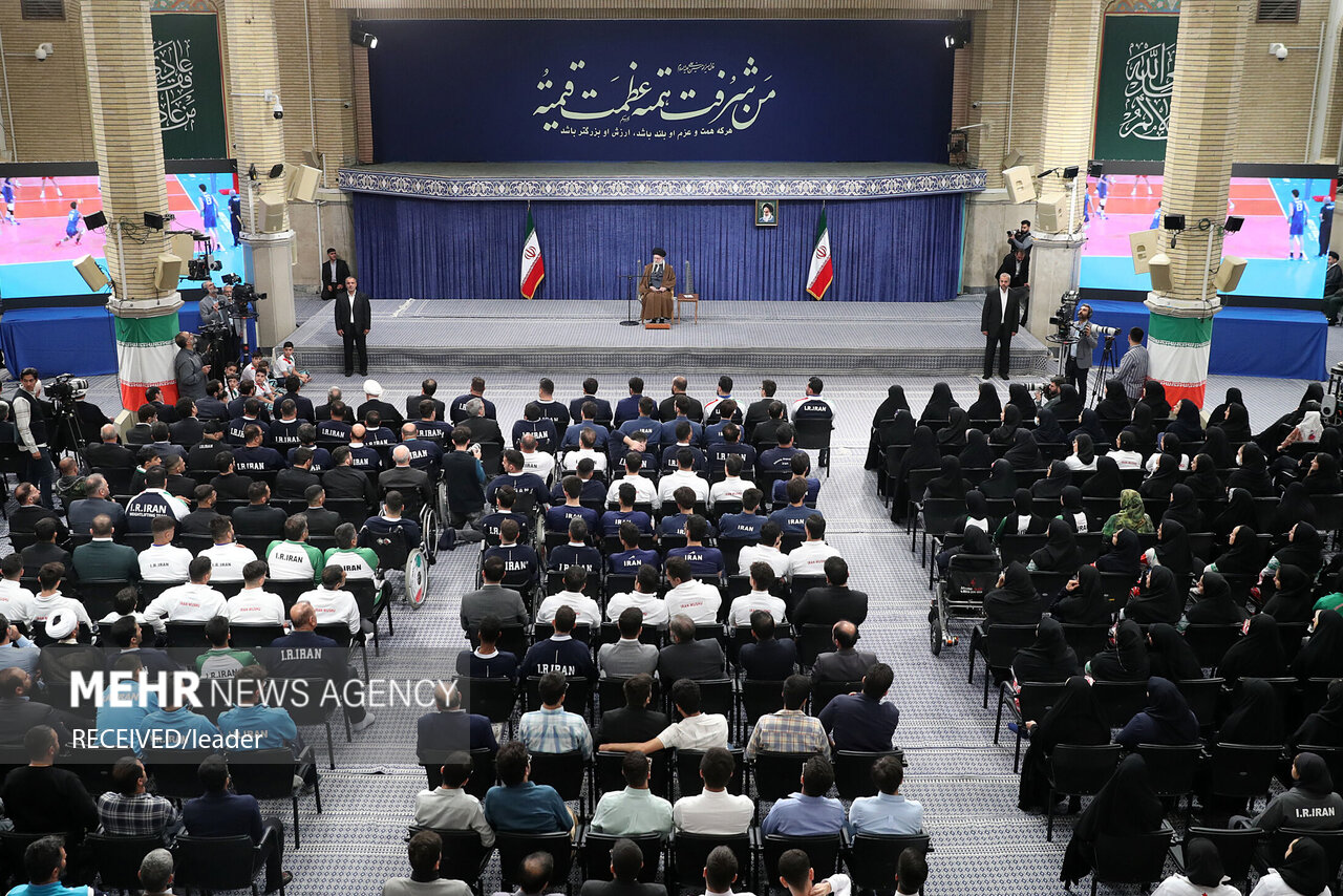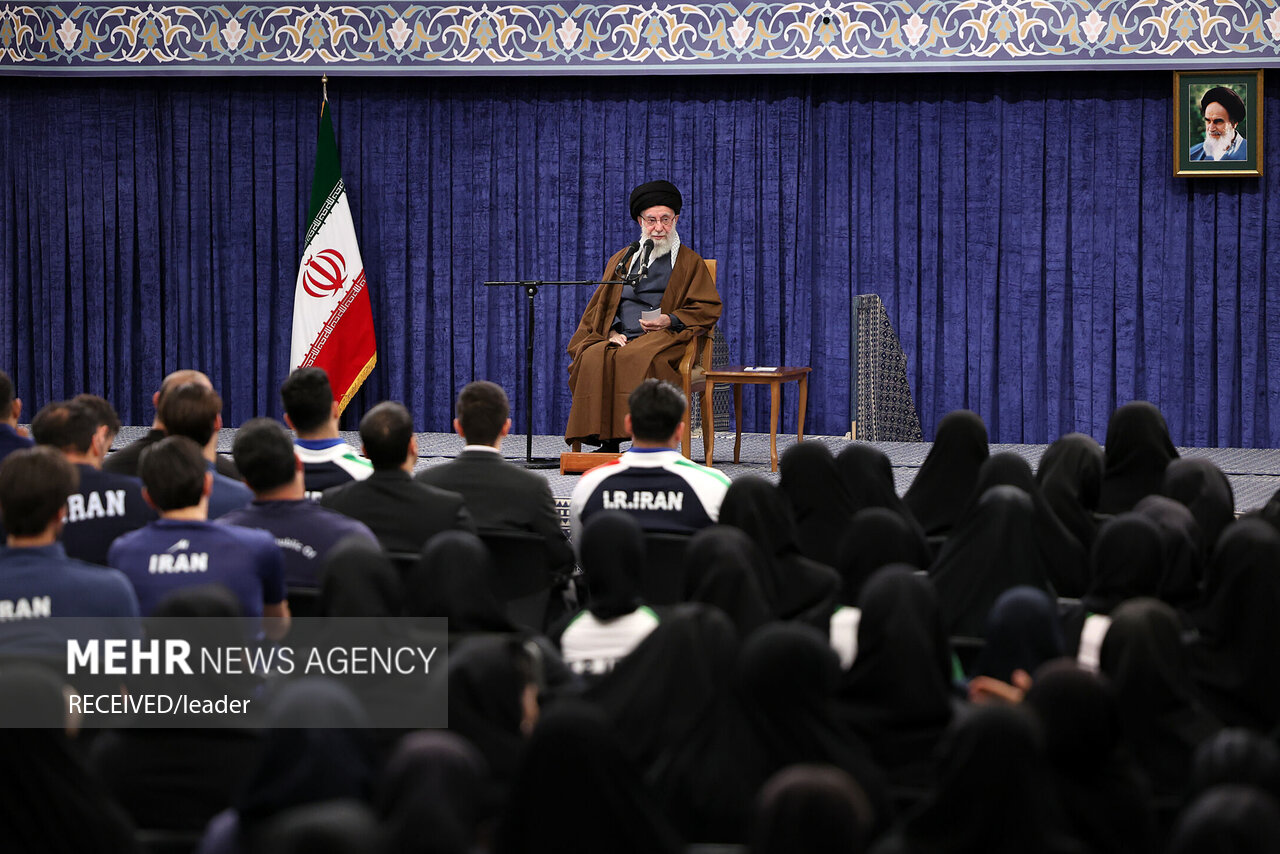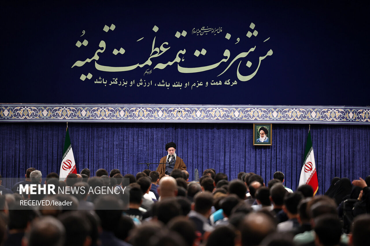 حضرت آیتالله خامنهای رهبر معظم انقلاب اسلامی صبح امروز در دیدار صدها نفر از قهرمانان رشتههای مختلف ورزشی و مدالآوران المپیادهای علمی جهانی، این افتخارآفرینان را مظهر رشد و تجلّی قدرت ملّی خواندند و تأکید کردند: شما ثابت کردید جوانان امیدآفرین ایران عزیز به عنوان «نماد ملّت»، این قدرت را دارند که بر قلهها بایستند و ذهنها و چشمهای جهان را متوجه فضای روشن ایران کنند.