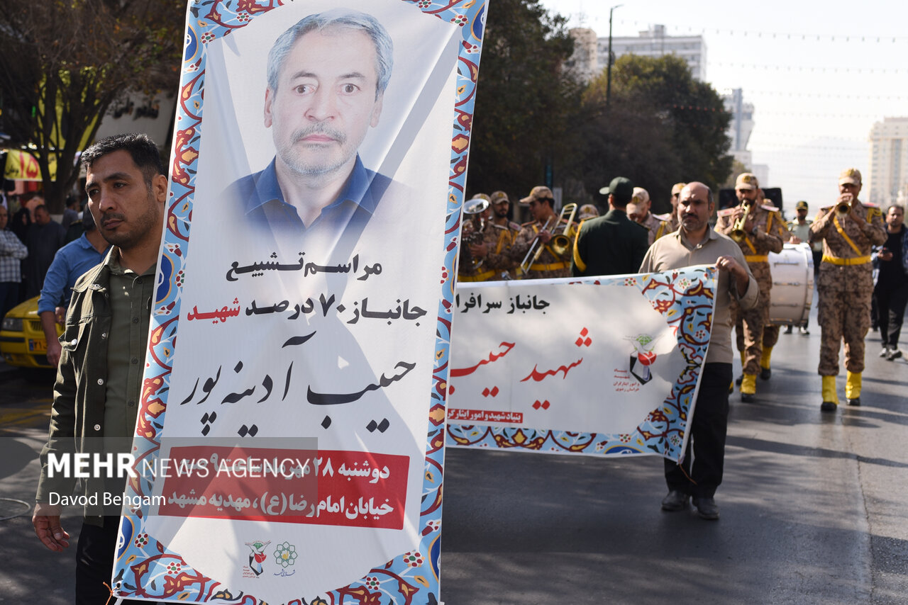 پیکر پاک جانباز ۷۰ درصد شهید «حبیب آدینه پور» که پس از سالها تحمل درد و عوارض ناشی از مجروحیتهای دوران جنگ به یاران شهیدش پیوسته بود صبح دوشنبه ۲۸ مهر ۱۴۰۴ در مشهد تشییع و خاکسپاری شد.