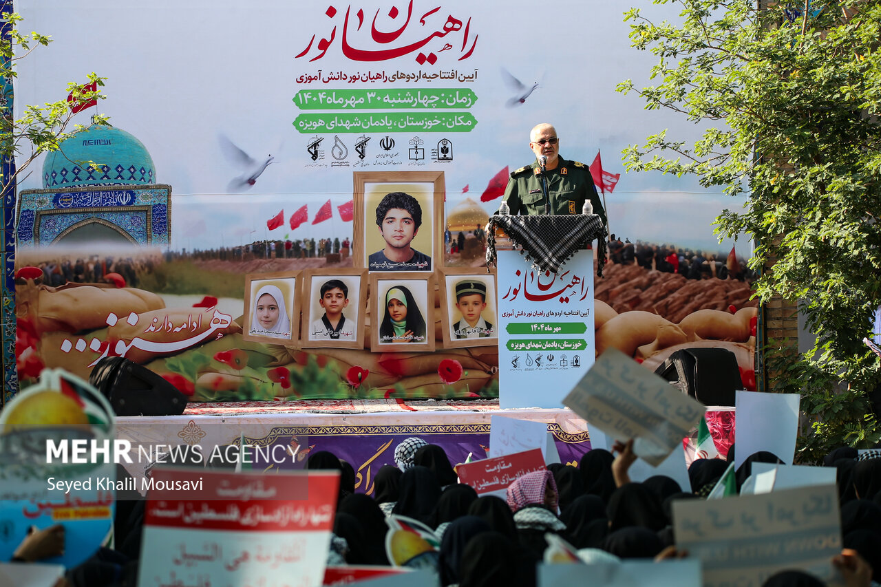 آیین ملی افتتاحیه اردوهای راهیان نور دانشآموزی کشور با حضور جمعی از مسئولان لشکری و کشوری، در شهرستان هویزه برگزار شد.
