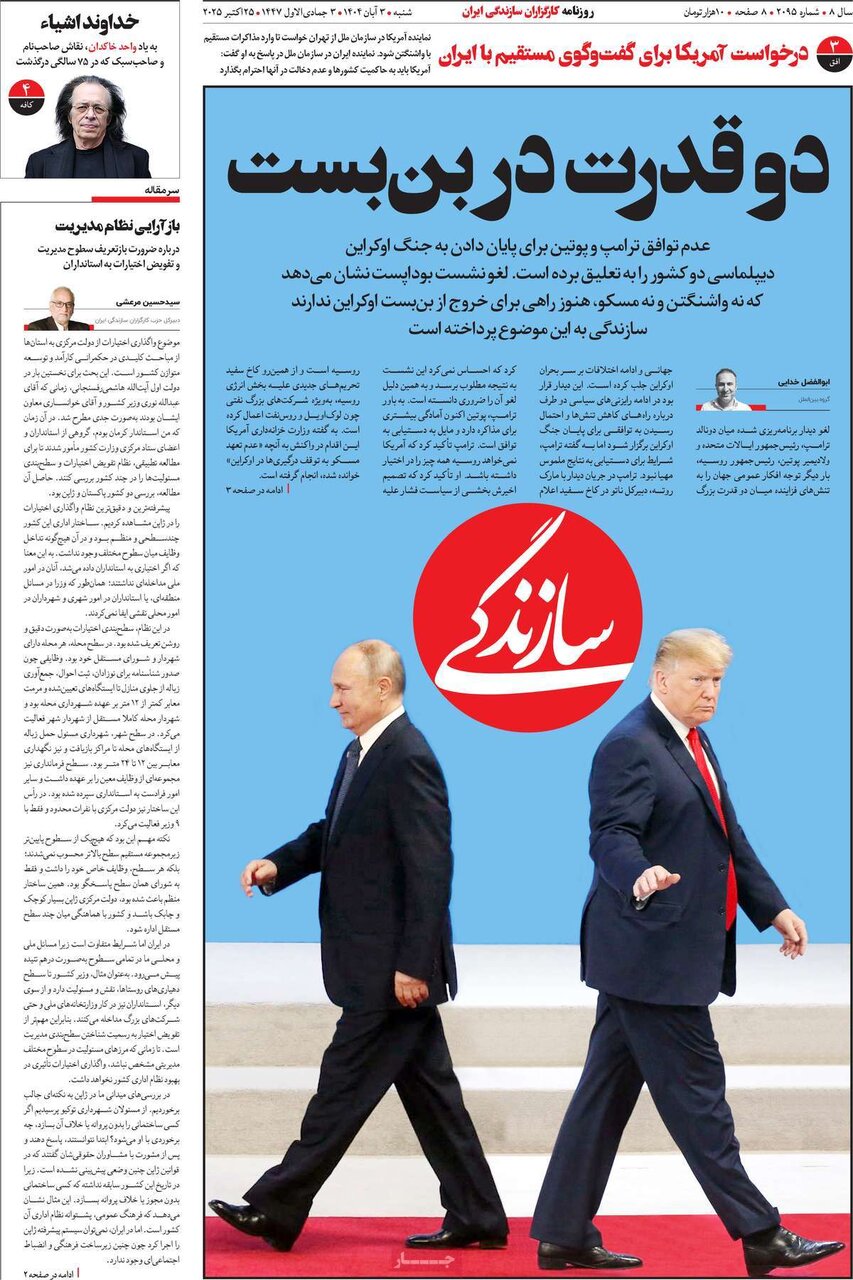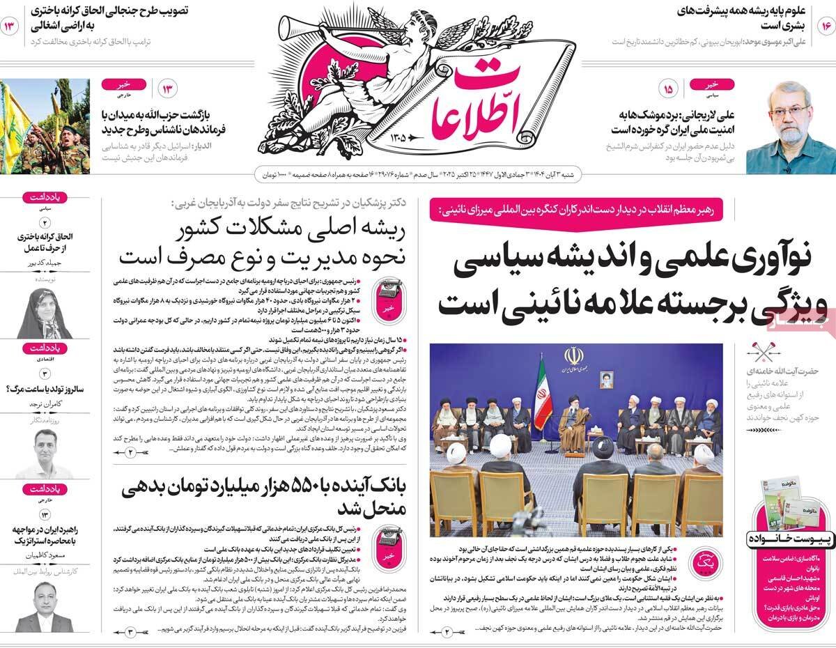 بیانات رهبرمعظم انقلاب در جمع شرکت کنندگان کنگره علامه نایینی، سخنان رئیس جمهور در آذربایجان غربی و... از تیترهای مطبوعات امروز است.