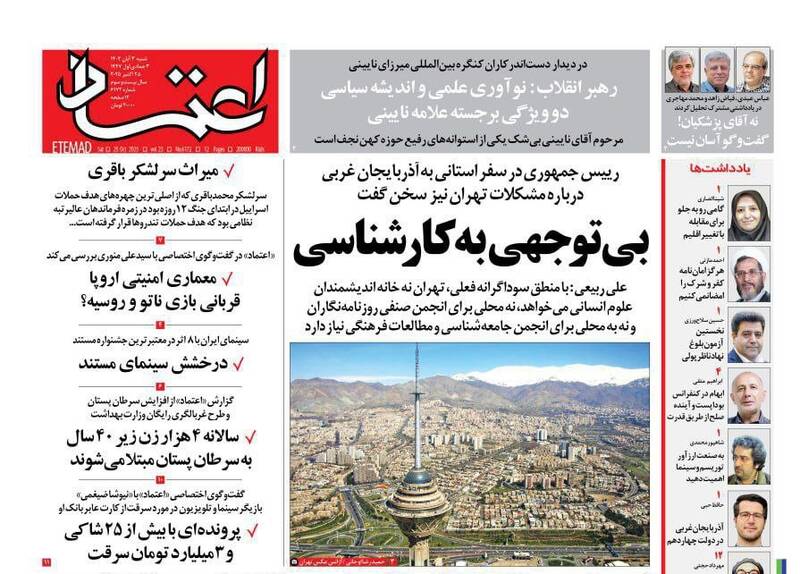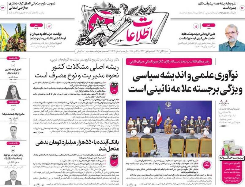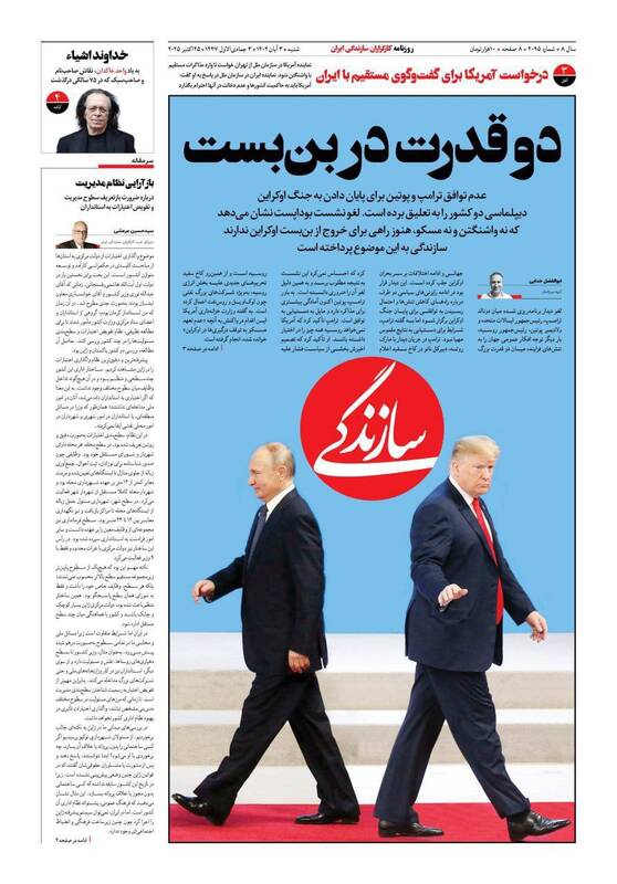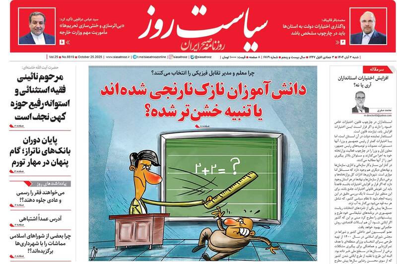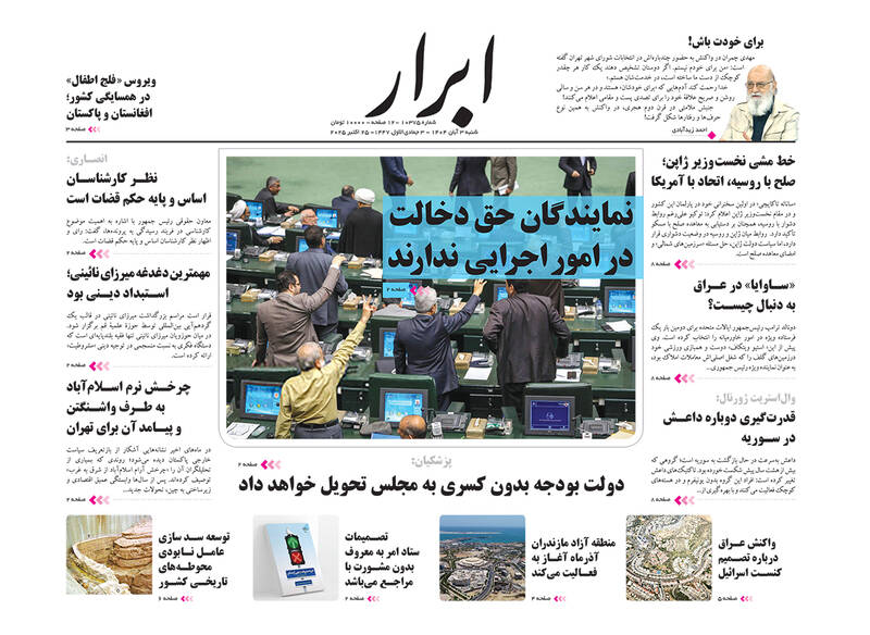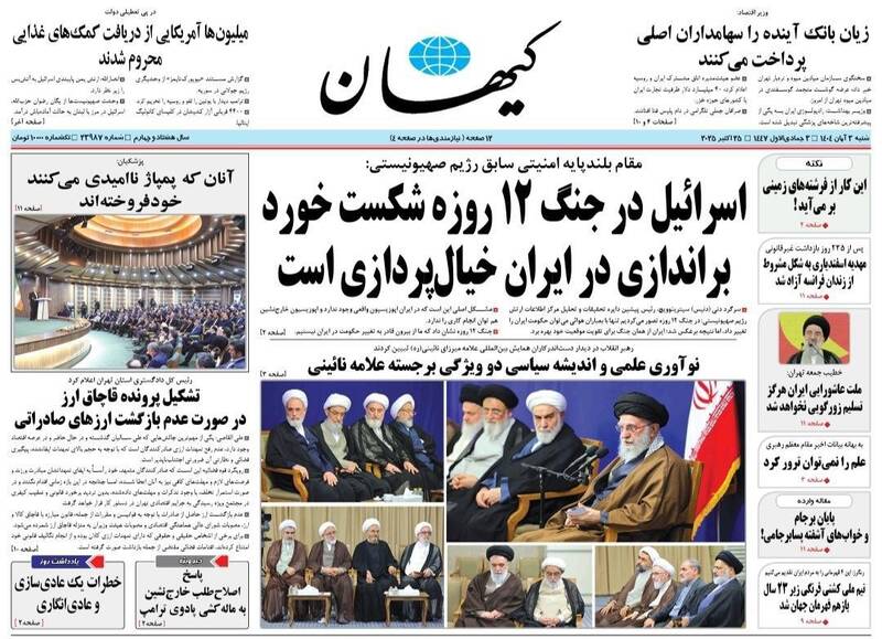 اسرائیل در جنگ ۱۲ روزه شکست خورد براندازی در ایران خیال پردازی است، خط و نشان پوتین، رودخانه خواری قانون شد، مردم سمت خدا هستند، دو قدرت در بن بست و...از جمله تیترهای روزنامههای شنبه ۳ آبان هستند.