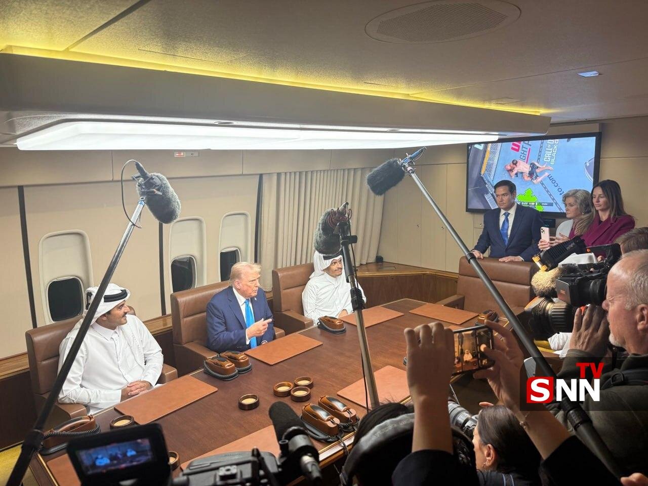 دونالد ترامپ درحال تماشای مسابقات UFC در هواپیمای خود با امیر قطر دیدار کرد./دانشجو