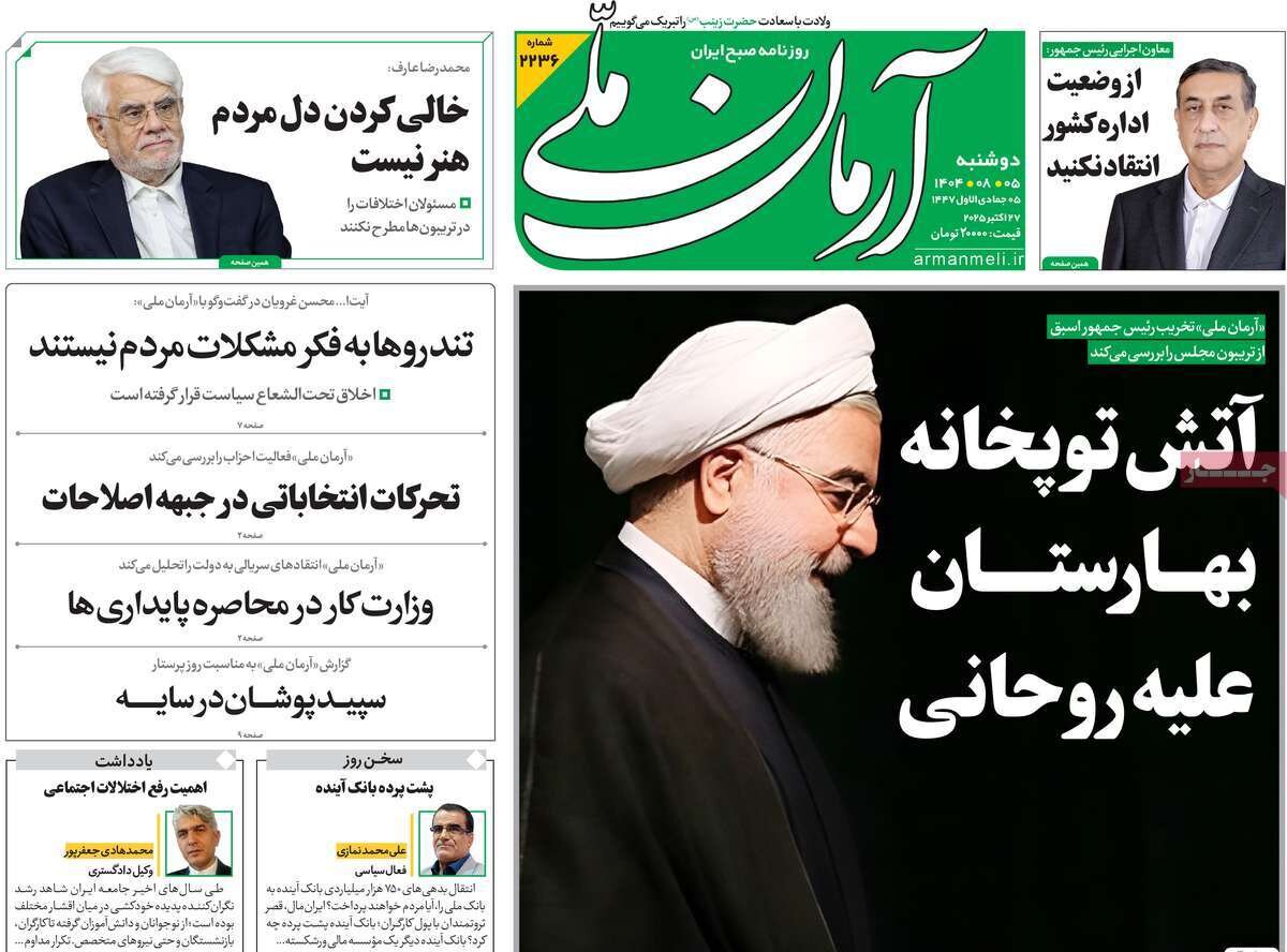 حملات رئیس و نمایندگان مجلس به روحانی و ظریف، تیتر اکثر روزنامه های امروز است.