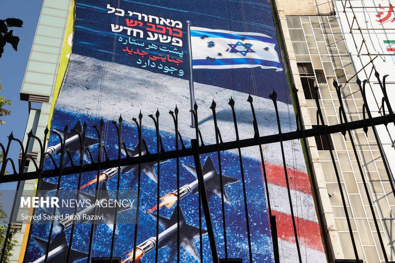 جدیدترین طرح دیوارنگاره میدان فلسطین تهران با عنوان «پشت هر ستاره جنایتی جدید وجود دارد» رونمایی شد.