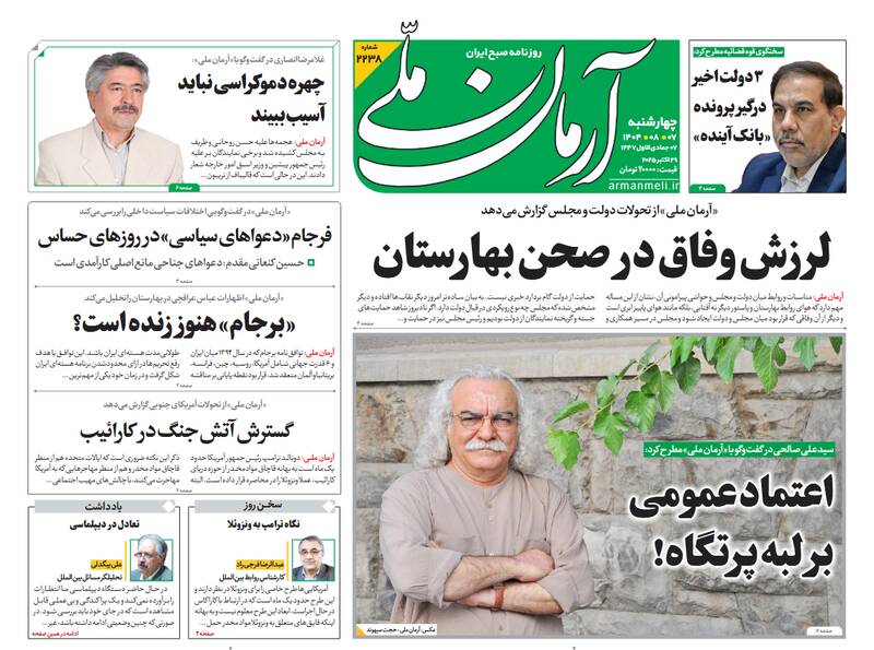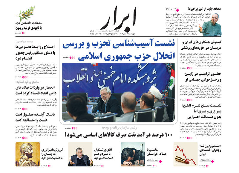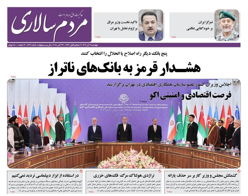 عکس/ صفحه نخست روزنامه‌های‌ چهارشنبه ۷ آبان ۱۴۰۴