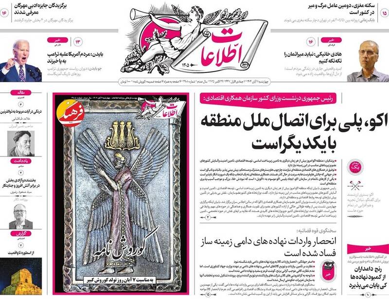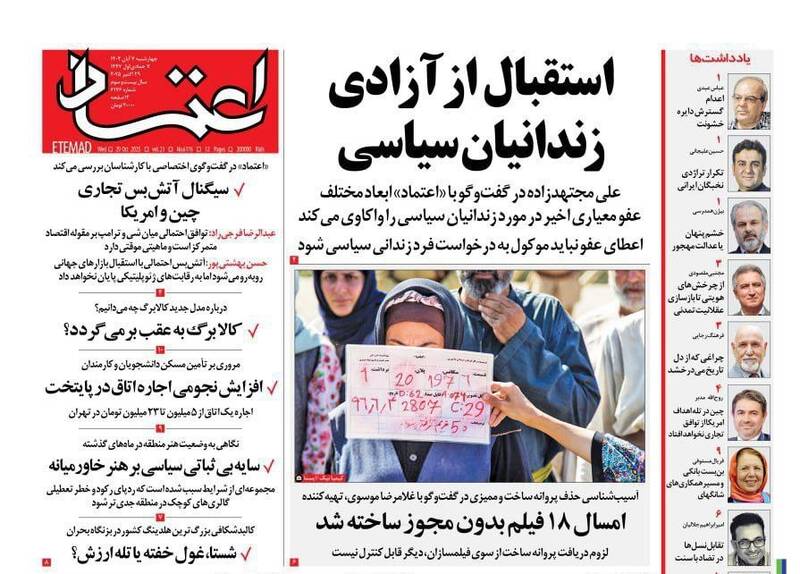حذف یارانه‌ها اولویت دارد یا بازپس‌گیری ارزهای صادراتی، پیام اکو، سیاست عدالت، ایده‌ای برای ایران، ایران تشنه نماز باران، دختران افتخار و...از جمله تیترهای روزنامه‌های چهارشنبه ۷ آبان هستند.