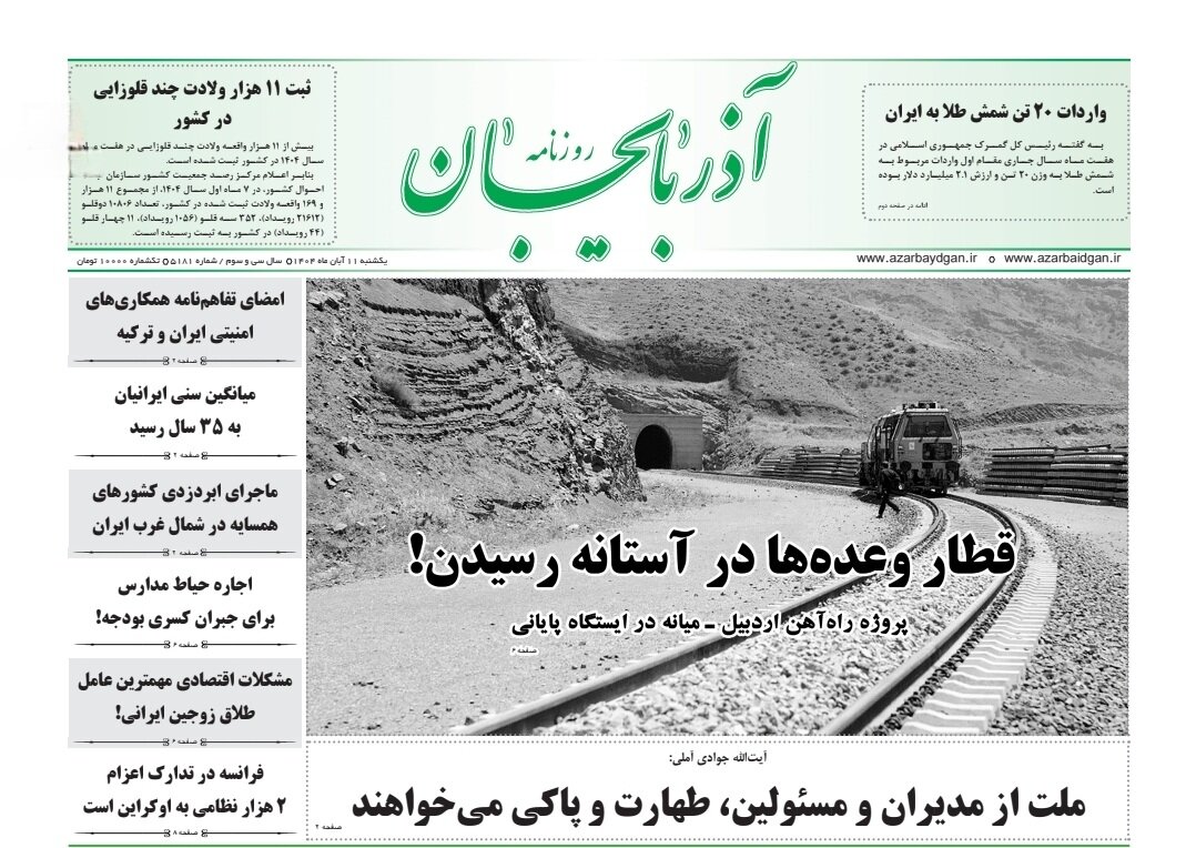 صفحه نخست روزنامه‌های آذربایجان شرقی ۱۱ آبان ۱۴۰۴
