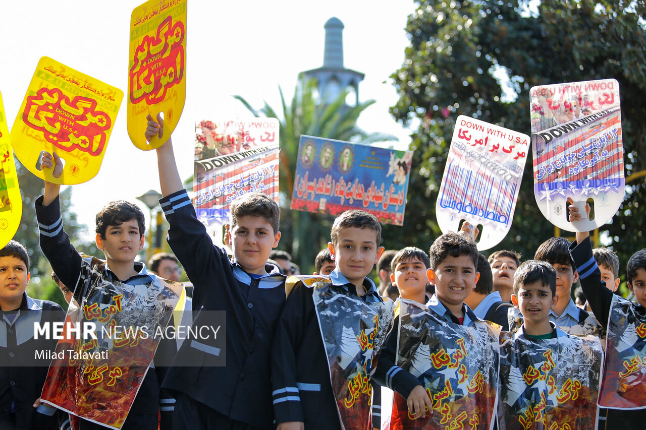 مردم و دانشآموزان فومن با حضور پرشور در راهپیمایی ۱۳ آبان، این روز را گرامی داشتند.