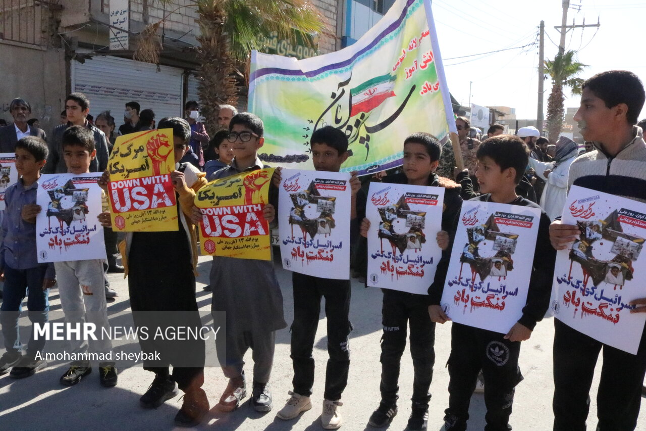 راهپیمایی یوم الله ۱۳ آبان ۱۴۰۴ با حضور پر شور مردم ولایت مدار و انقلابی شهر زابل با وجود شرایط نامساعد آب و هوایی برگزار شد.