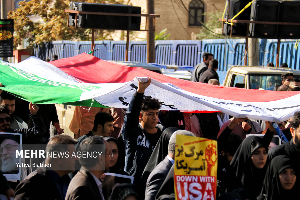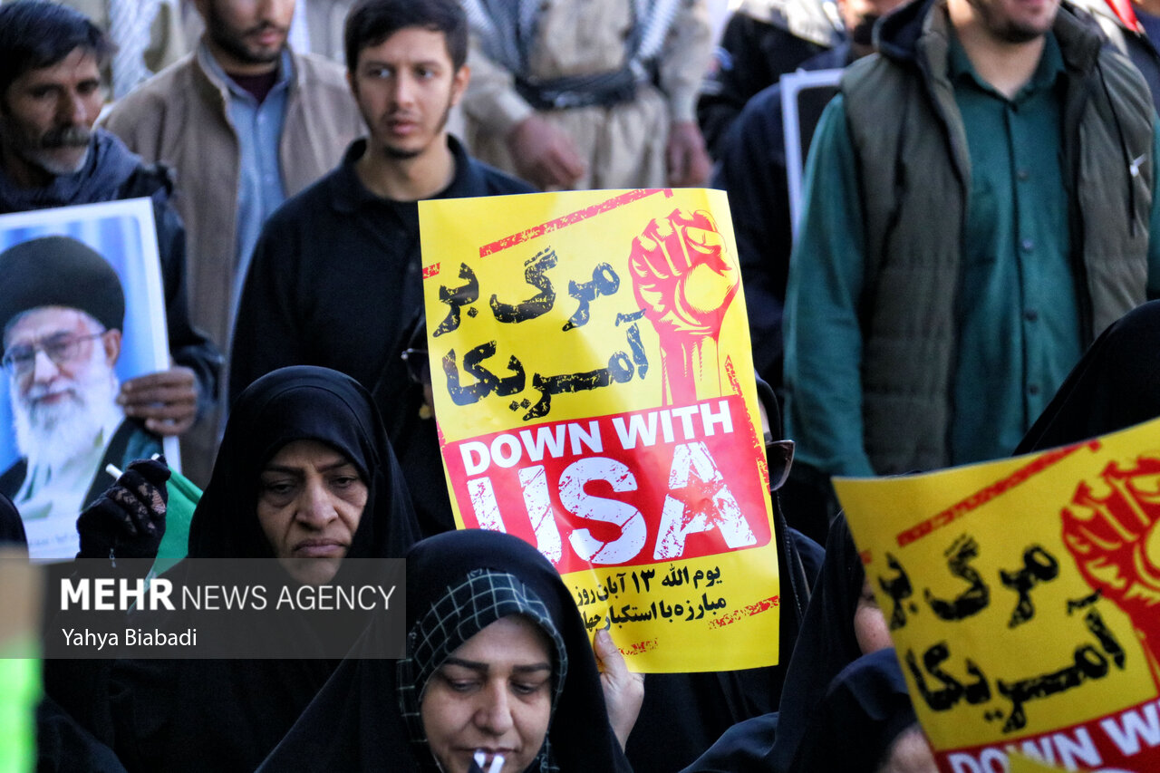 راهپیمایی باشکوه ۱۳ آبان روز مبارزه با استکبار جهانی با حضور پرشور دانشآموزان و اقشار مختلف مردم از چهارراه مدرس تا میدان آزادی برگزار و شعار مرگ بر آمریکا در این شهر طنین انداز شد.