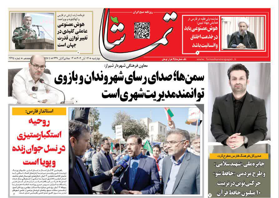 صفحه نخست روزنامه های استان فارس چهارشنبه ۱۴ آبان ماه