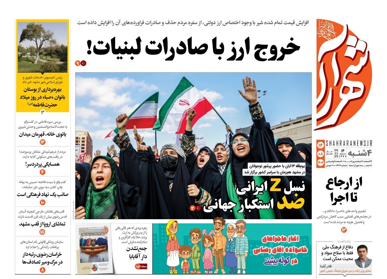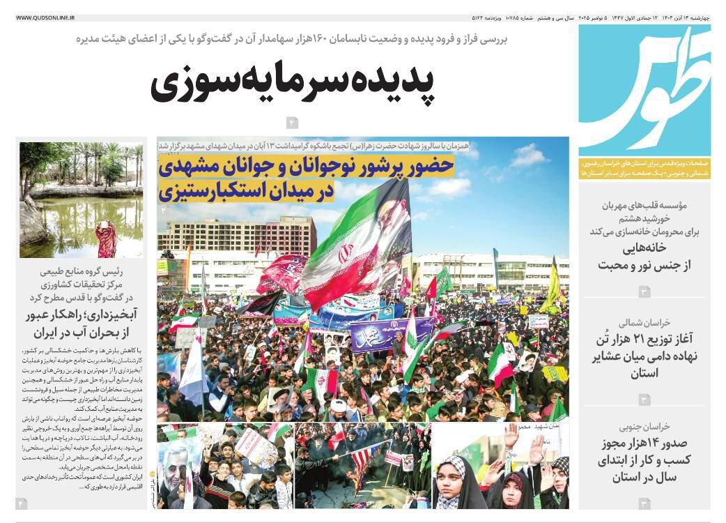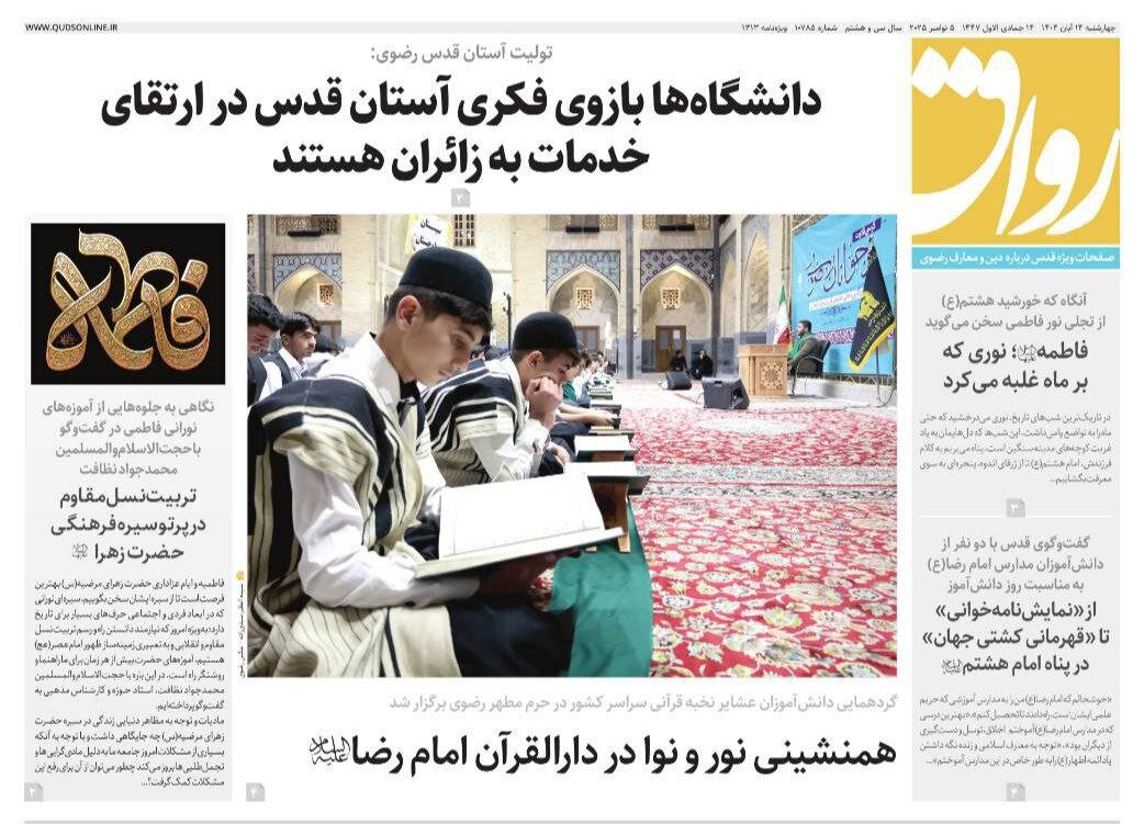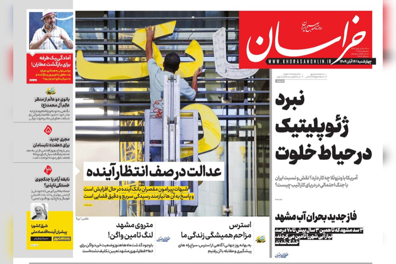صفحه اول روزنامه های خراسان رضوی چهارشنبه ۱۴ آبان ۱۴۰۴