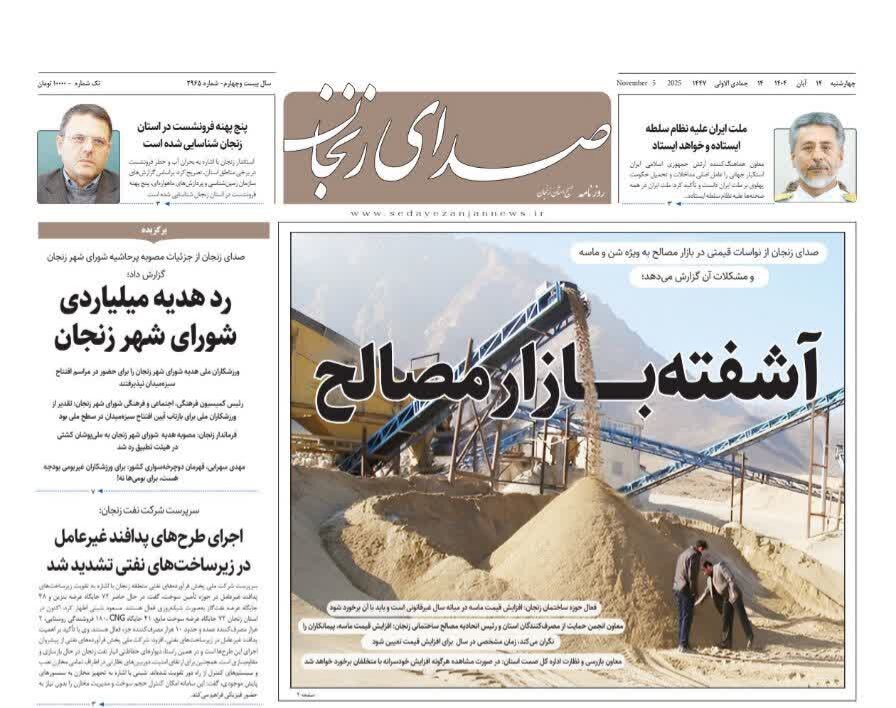 صفحه اول روزنامه های زنجان ۱۴ آبان ۱۴۰۴