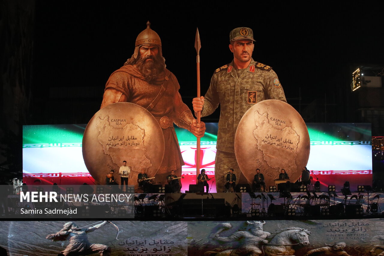 مراسم اختتامیه پویش «در مقابل ایران دوباره زانو میزنید» و رونمایی از مجسمه «والرین» شامگاه جمعه ۱۶ آبان ماه ۱۴۰۴ در میدان انقلاب برگزار شد.