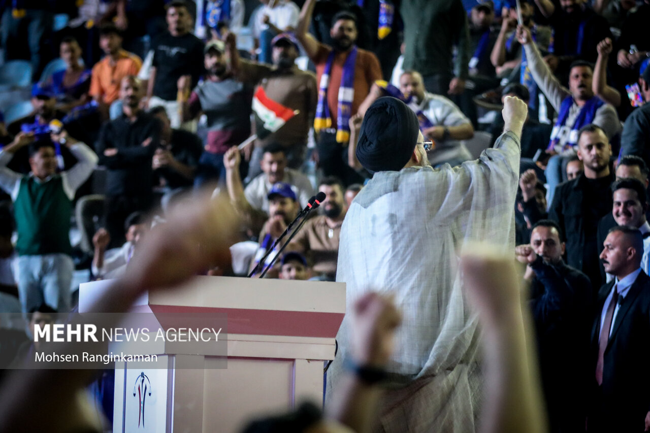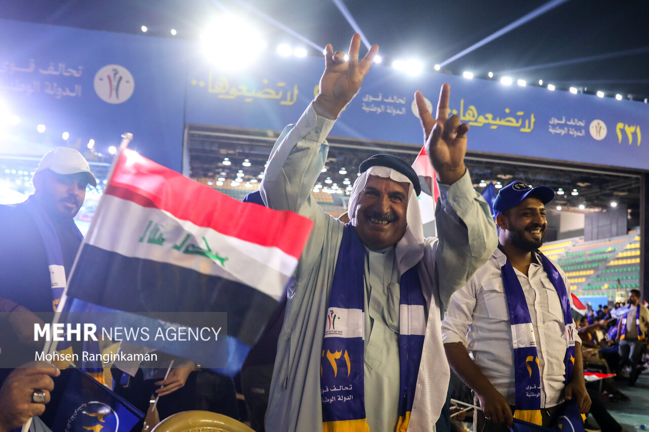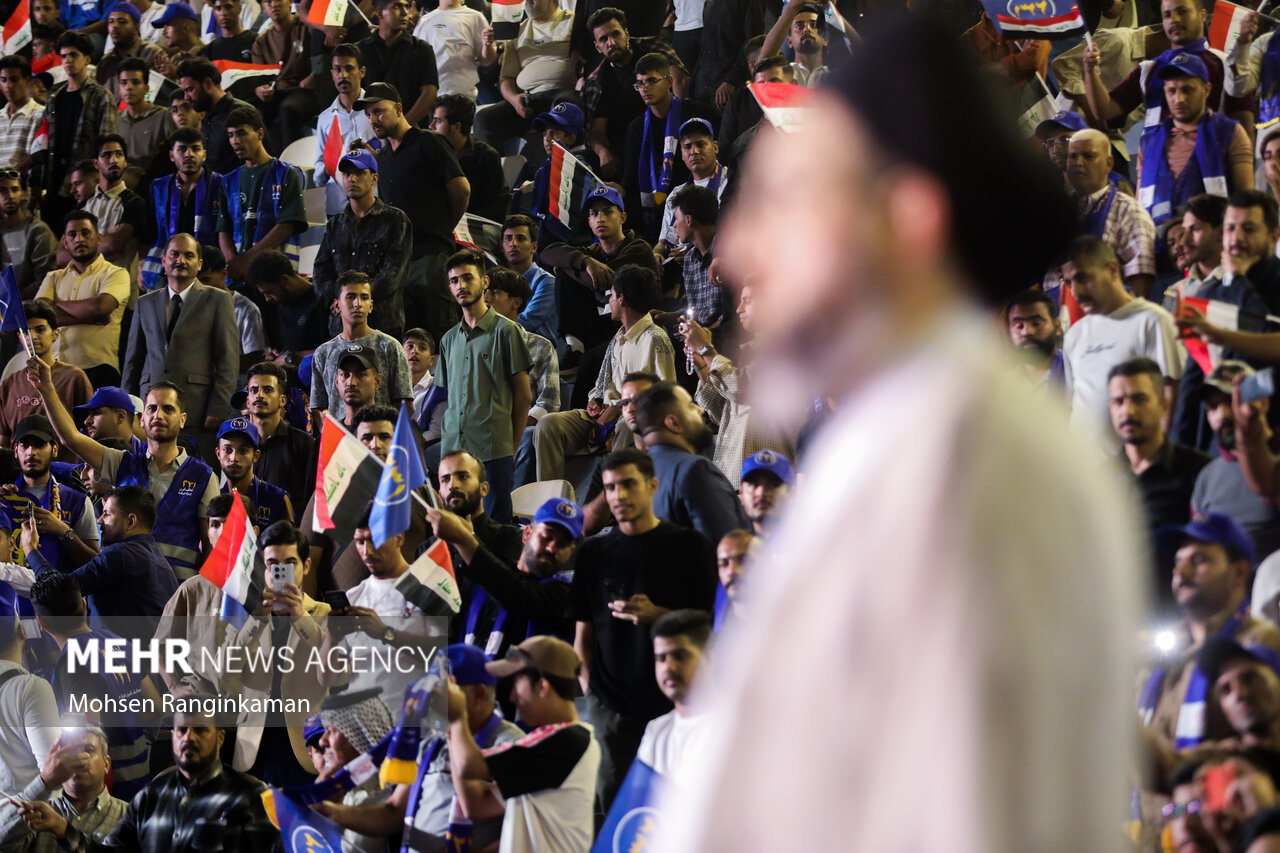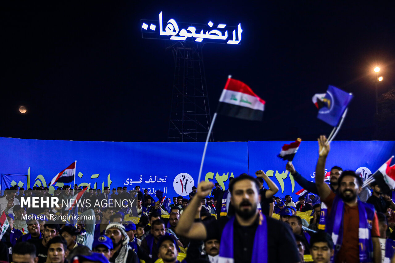 بزرگترین گردهمایی انتخاباتی بغداد در آخرین شب تبلیغات انتخابات پارلمانی عراق با حضور گسترده جوانان عراقی در ورزشگاه ملت این شهر برگزار شد.