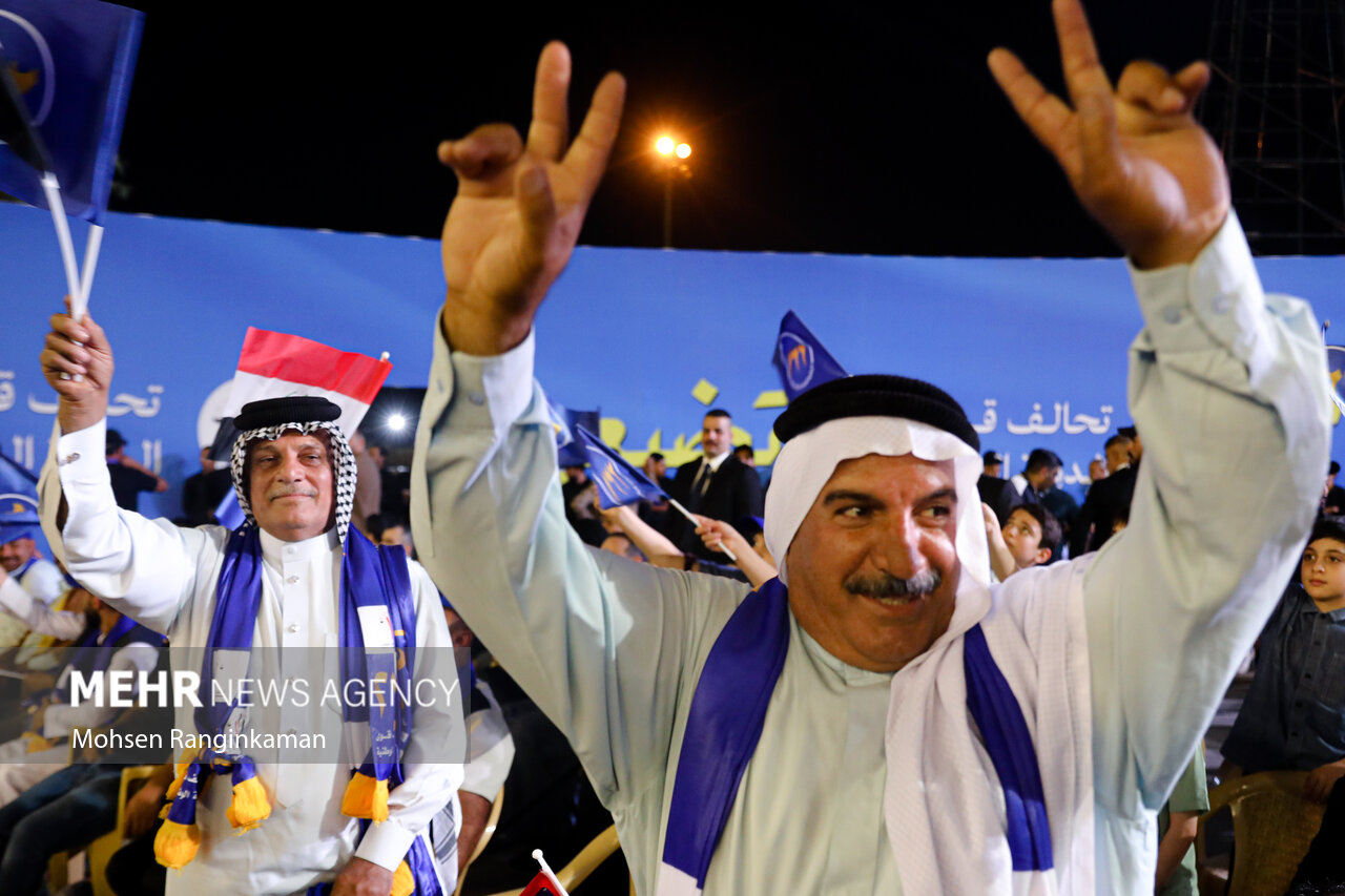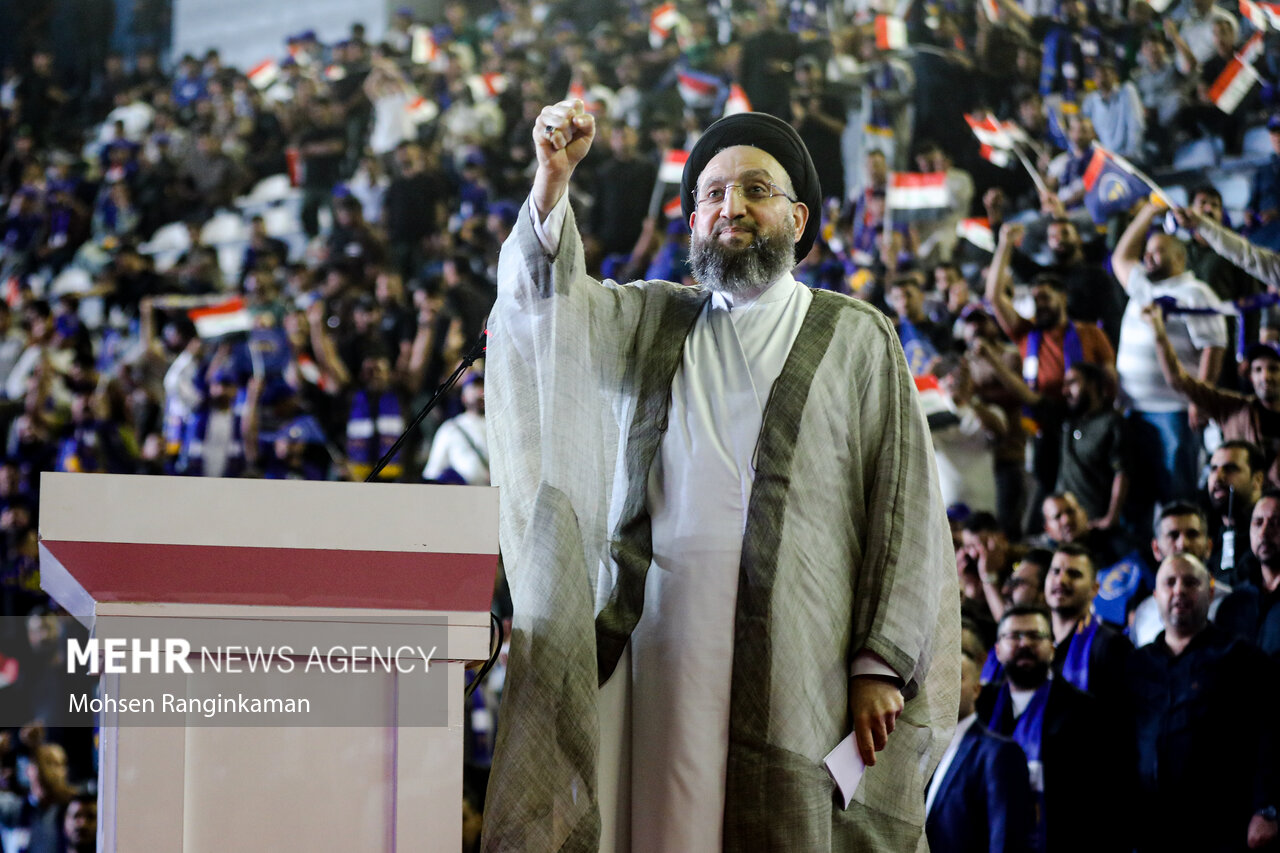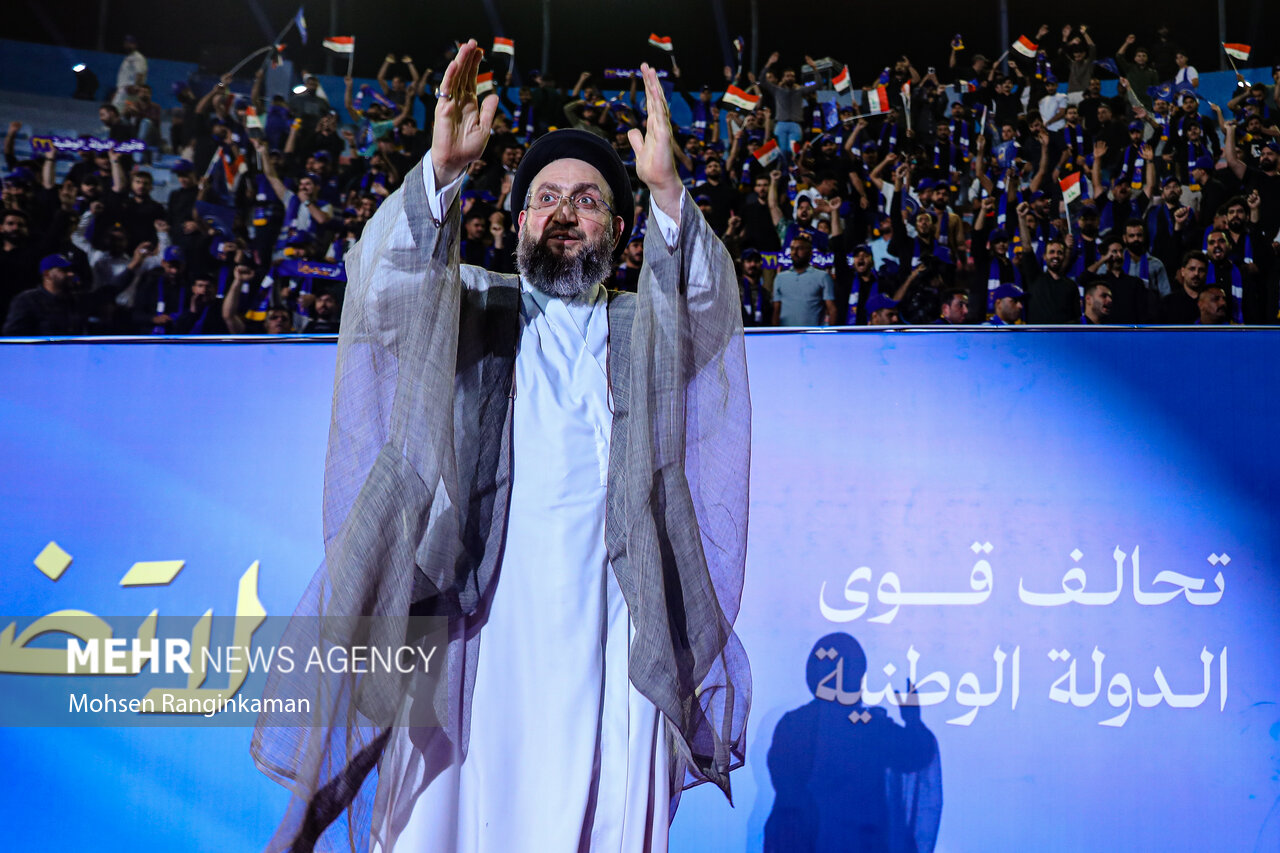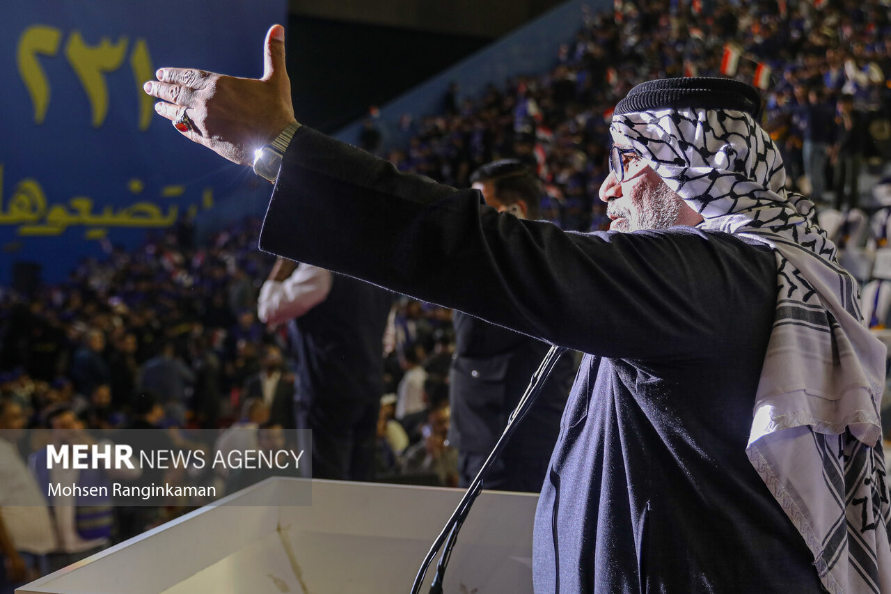بزرگترین گردهمایی انتخاباتی بغداد در آخرین شب تبلیغات انتخابات پارلمانی عراق با حضور گسترده جوانان عراقی در ورزشگاه ملت این شهر برگزار شد.