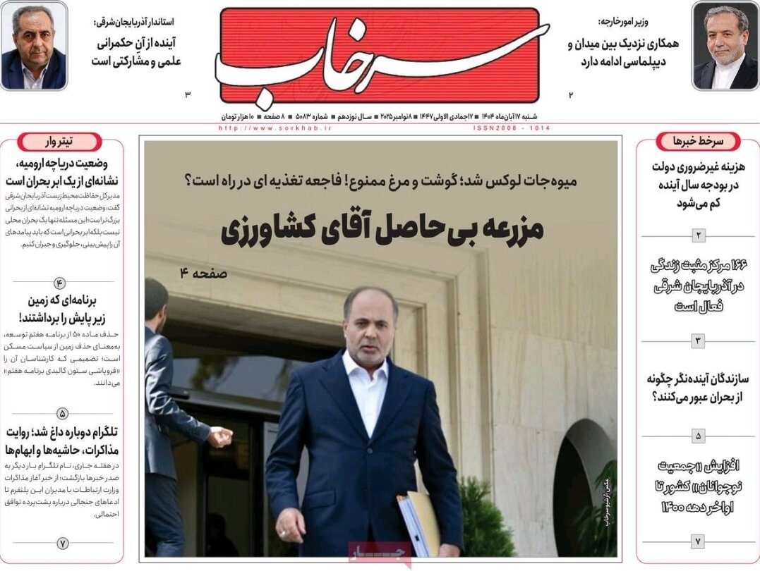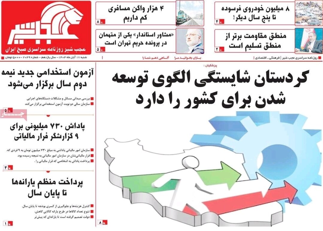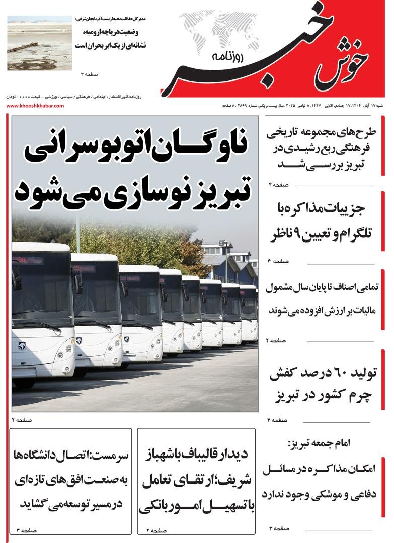 صفحه نخست روزنامه‌های آذربایجان شرقی ۱۷ آبان ۱۴۰۴