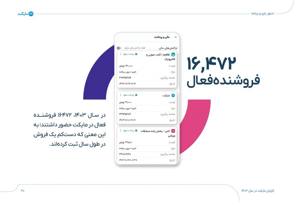 این آمار فروش در سال گذشته، در نهایت منجر به درآمد ۳۷۴ میلیارد تومانی توسعهدهندگانی شده که در مایکت فعال هستند.