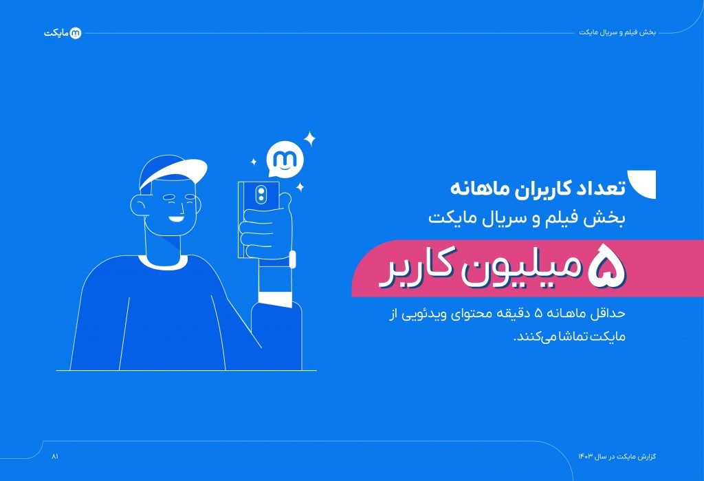 مایکت در این بخش به ۵ میلیون کاربر ماهانه دست یافته است. این افراد شامل کاربرانی میشوند که ماهانه حداقل ۵ دقیقه محتوای ویدئویی از مایکت تماشا میکنند.