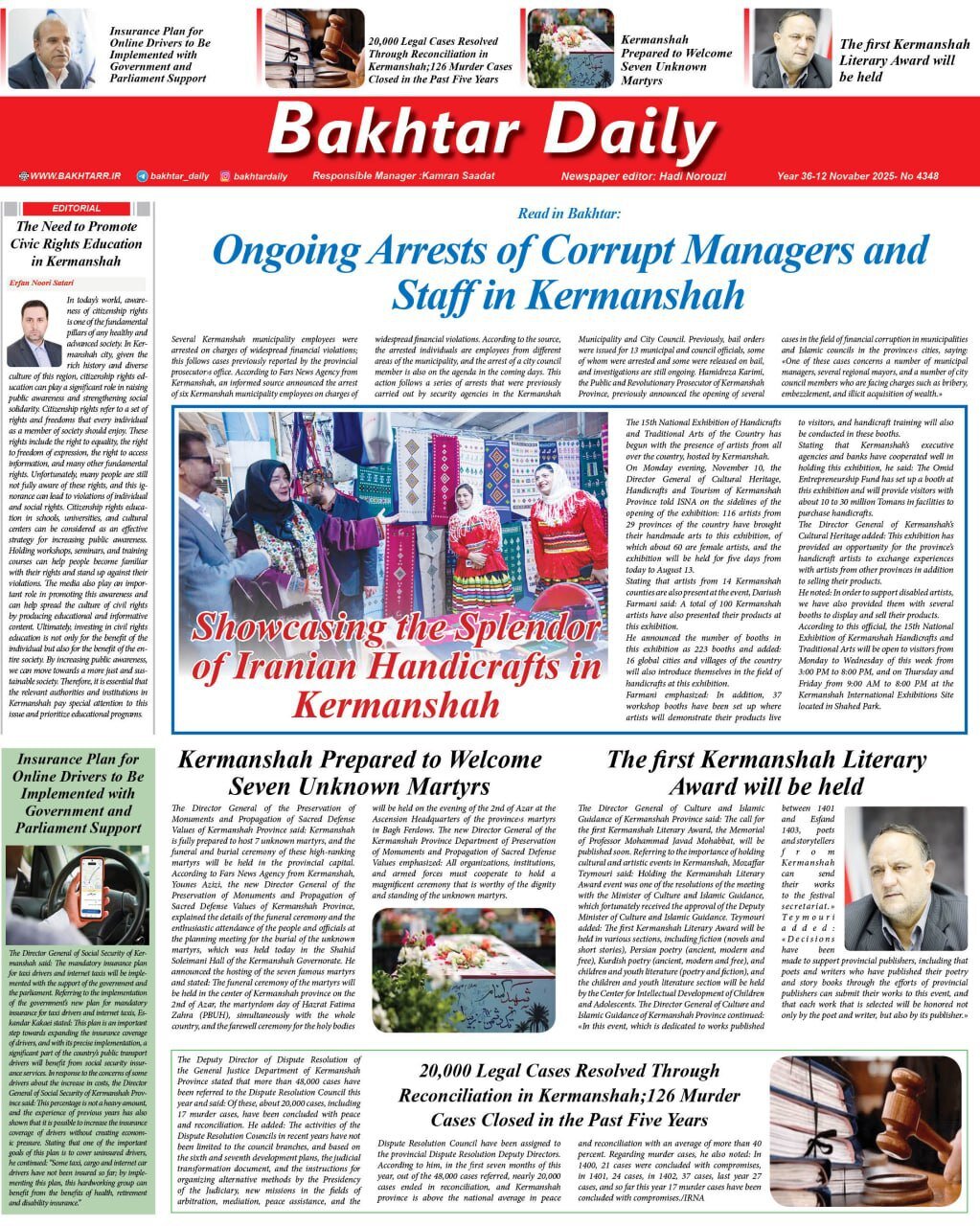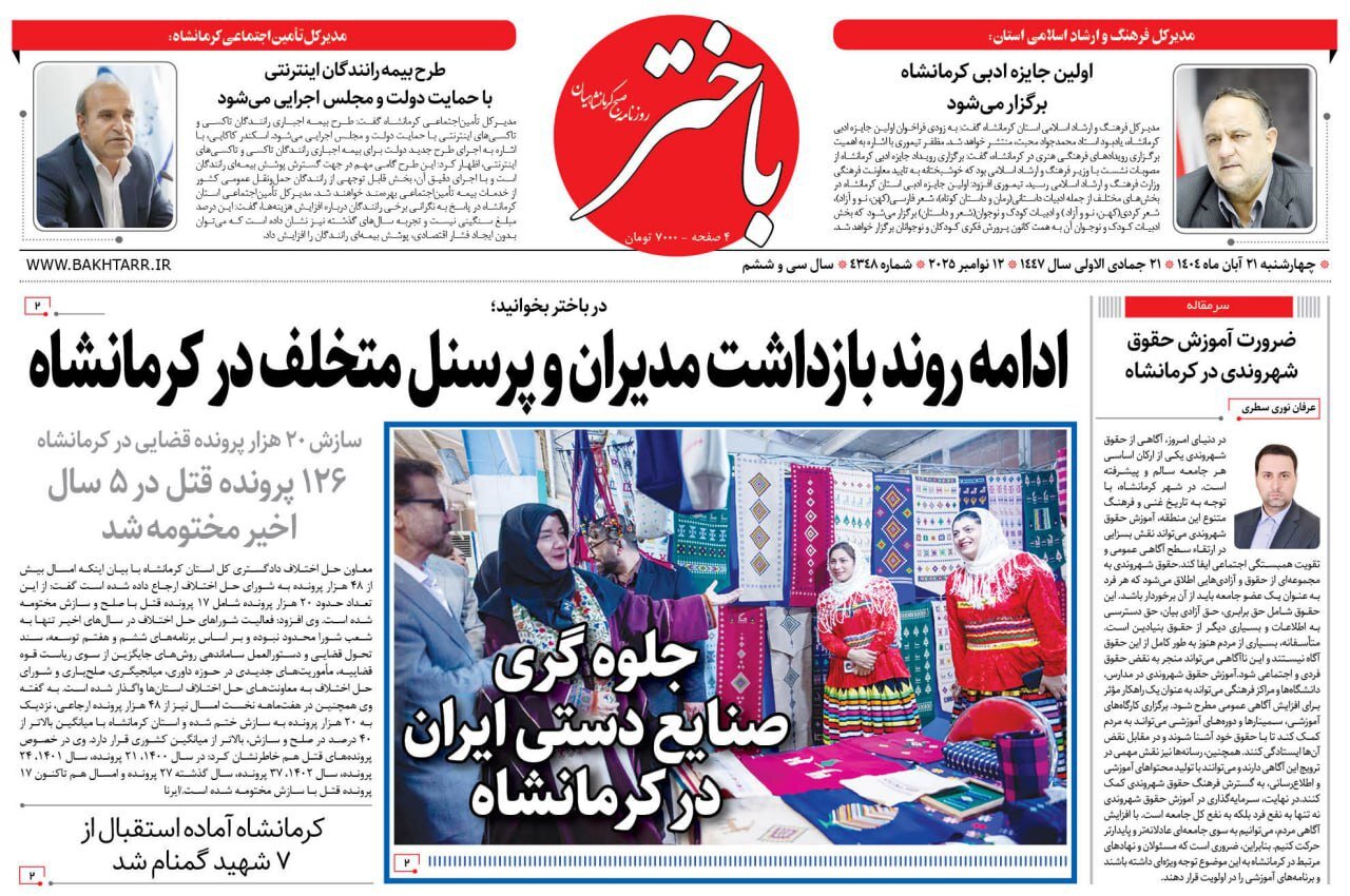 صفحه اول روزنامه‌های کرمانشاه چهارشنبه ۲۱ آبان‌ماه