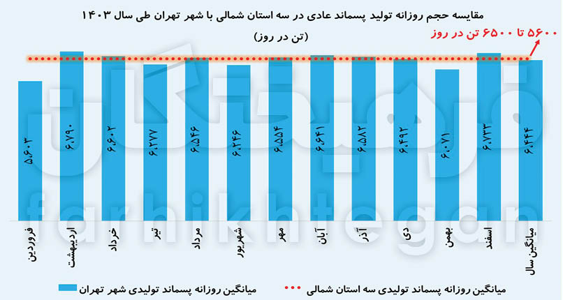استانهای شمالی کشور؛ گیلان، مازندران و گلستان به دلیل شرایط اقلیمی خاص، الگوی مصرف و سبک زندگی ساکنان و حضور گسترده گردشگران با معضل تناژ بالای پسماند تولیدی روبهرو هستند. بر اساس آمارهای گزارش مرکز پژوهشهای مجلس بسته به شرایط زمانی پایش روزانه بین ۵۶۰۰ تا ۶۵۰۰ تن پسماند عادی در این سه استان تولید میشود که سهمی بیش از نسبت جمعیتی آنها در کشور است. رهاسازی در سواحل و جنگلها، نبود زیرساختهای کافی تفکیک در مبدأ و پردازش و در نهایت دفن غیراصولی پسماندها موجب افزایش غلظت آلایندهها در منابع آب، خاک و هوا شده که پیامدهایی همچون افزایش شاخص خطر ابتلا به بیماریهای واگیر یا صعبالعلاج، ایجاد تنشهای اجتماعی و همچنین ضرر اقتصادی مدیریت اجرایی پسماندها را داشته است. بر اساس بررسیها، در استانهای مازندران و گیلان، در مقاطع زمانی مشخص (بهویژه نوروز یا تابستان)، شاهد این معنا هستیم که: افزایش ۵۵ درصدی میزان تولید پسماند در استانهای گیلان و مازندران در نوروز سال ۱۴۰۳ است.