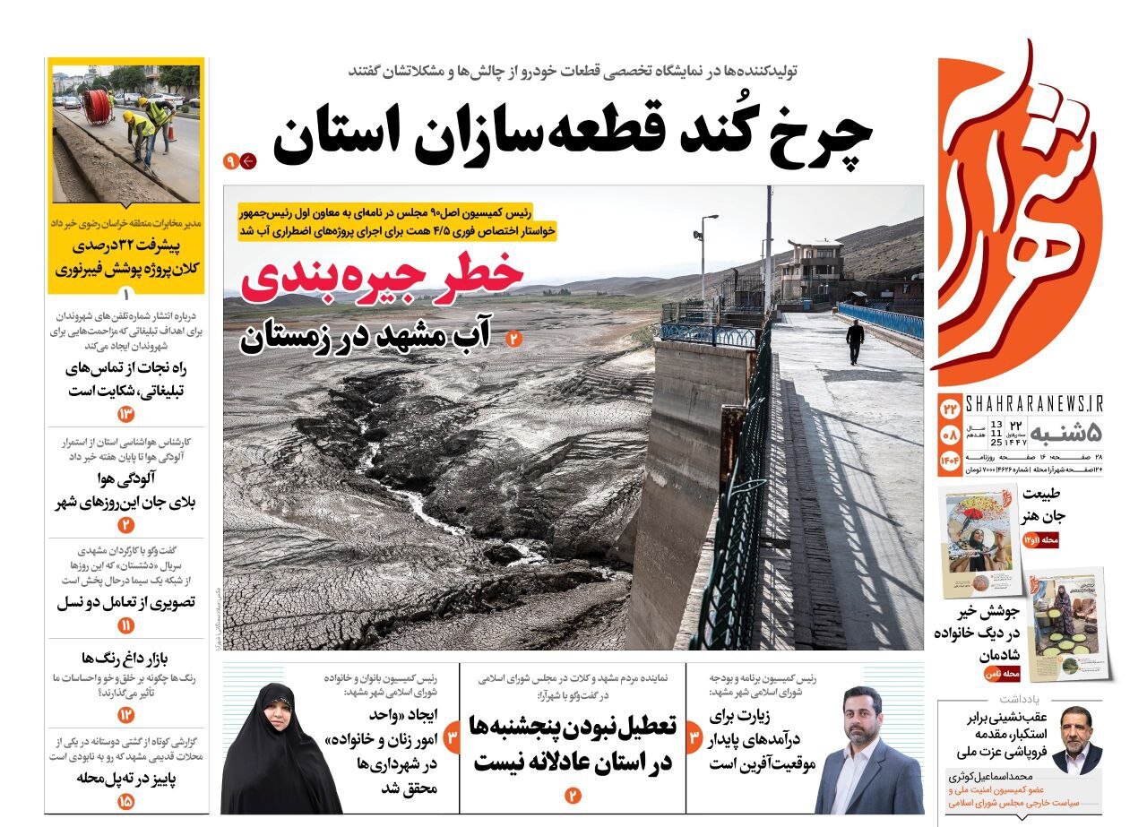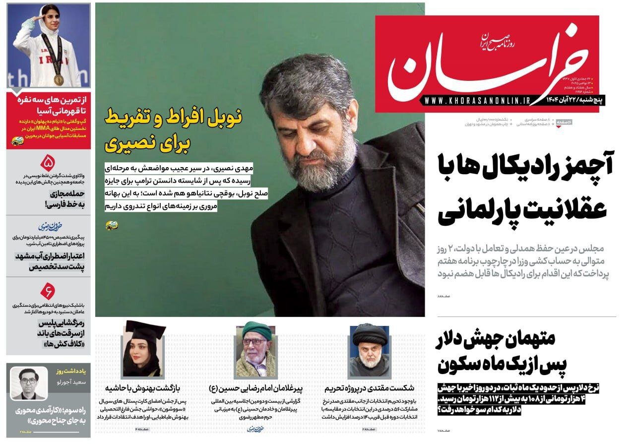 صفحه اول روزنامه های خراسان رضوی پنجشنبه ۲۲ آبان