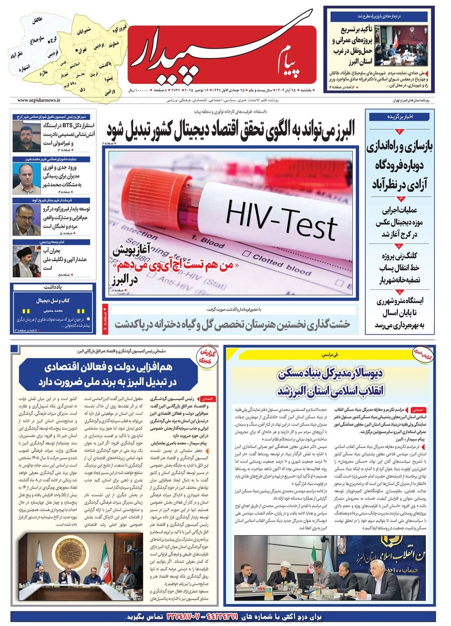 صفحه اول روزنامه‌های استان البرز یکشنبه ۲۵ آبان ماه