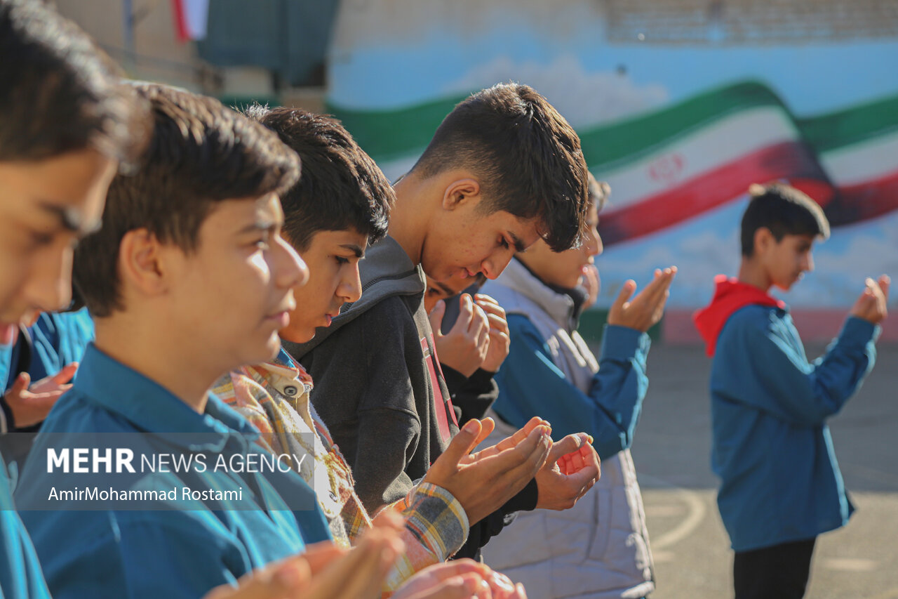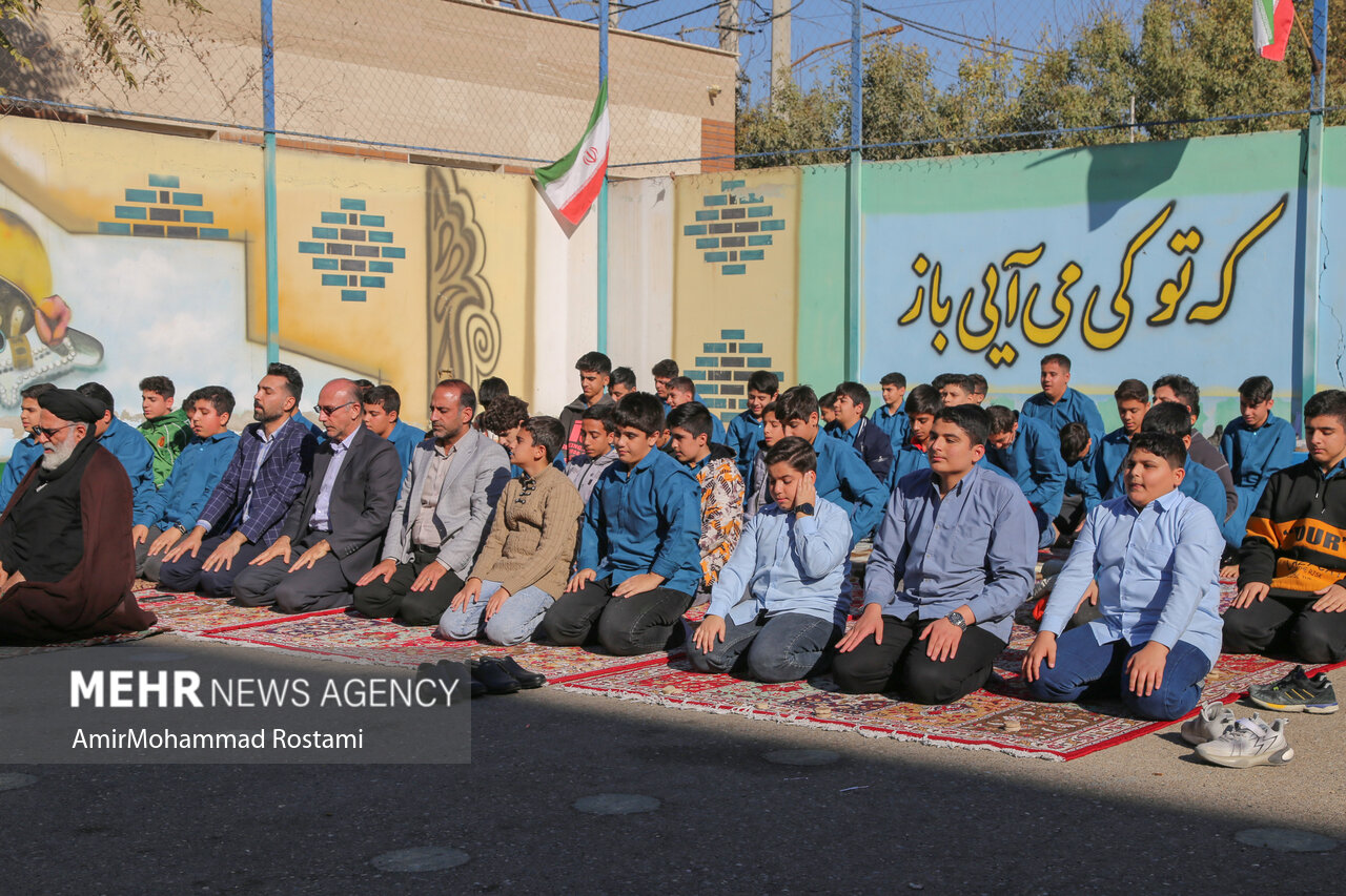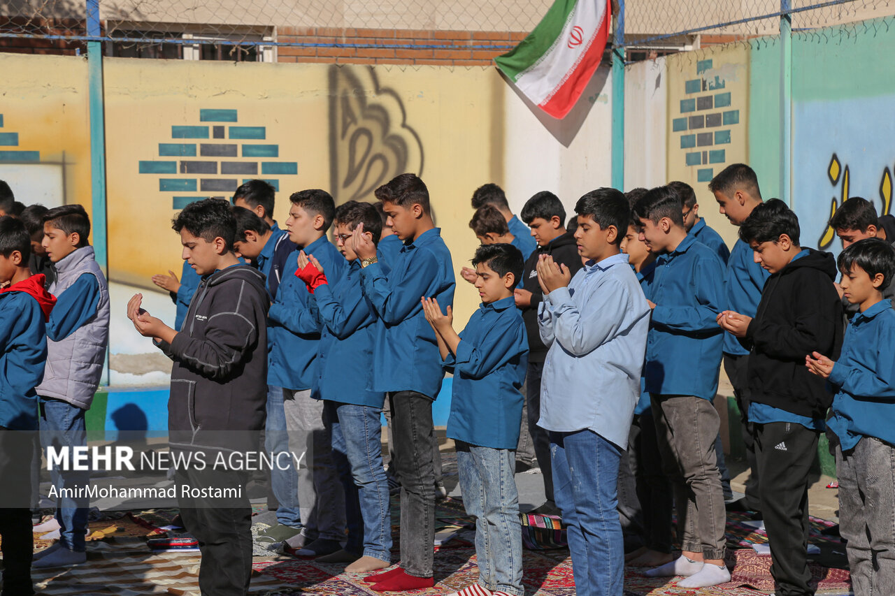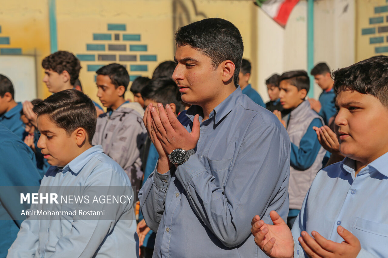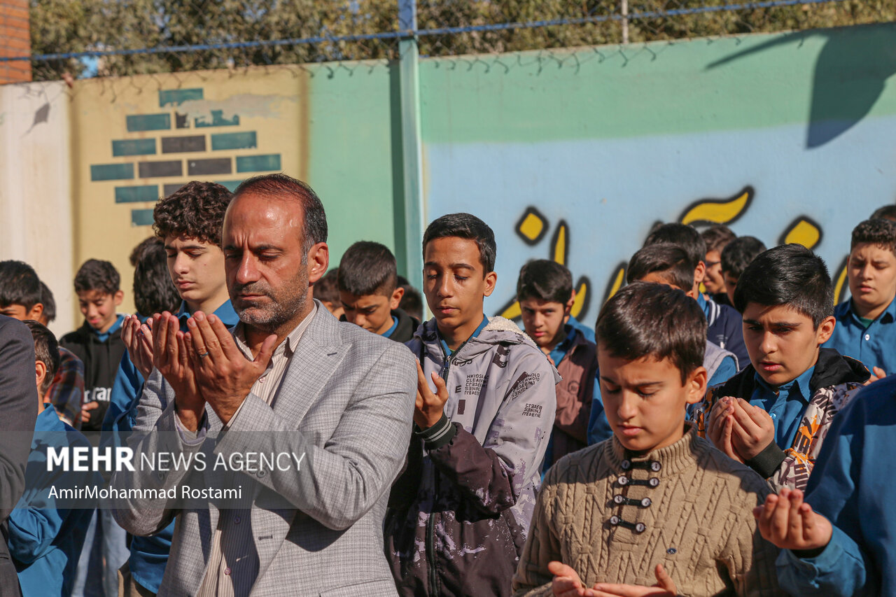 اقامه نماز باران توسط دانش آموزان مدرسه منتظرین شاهد در ورامین