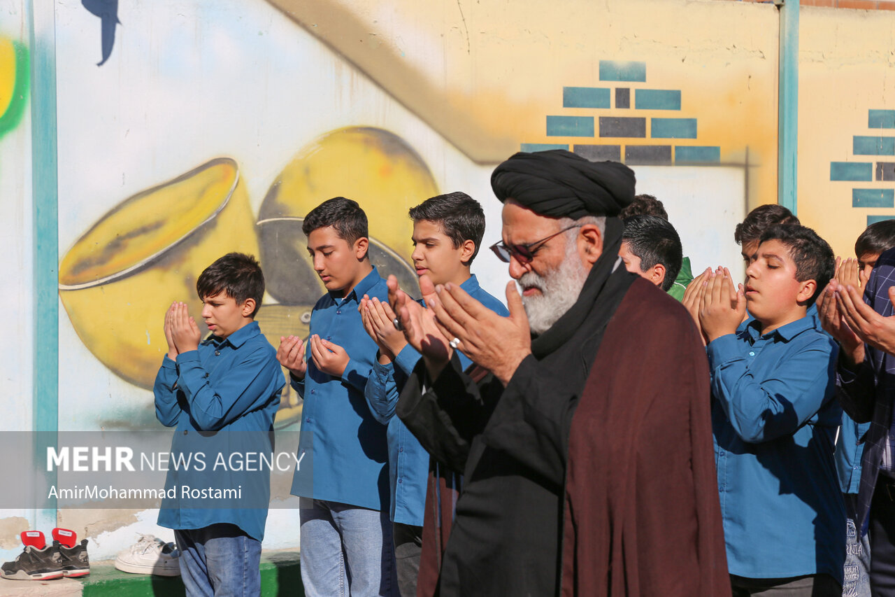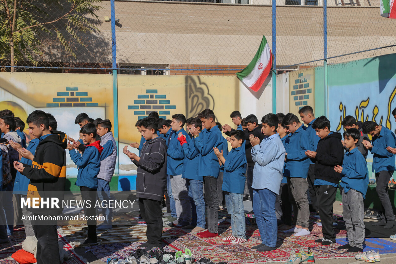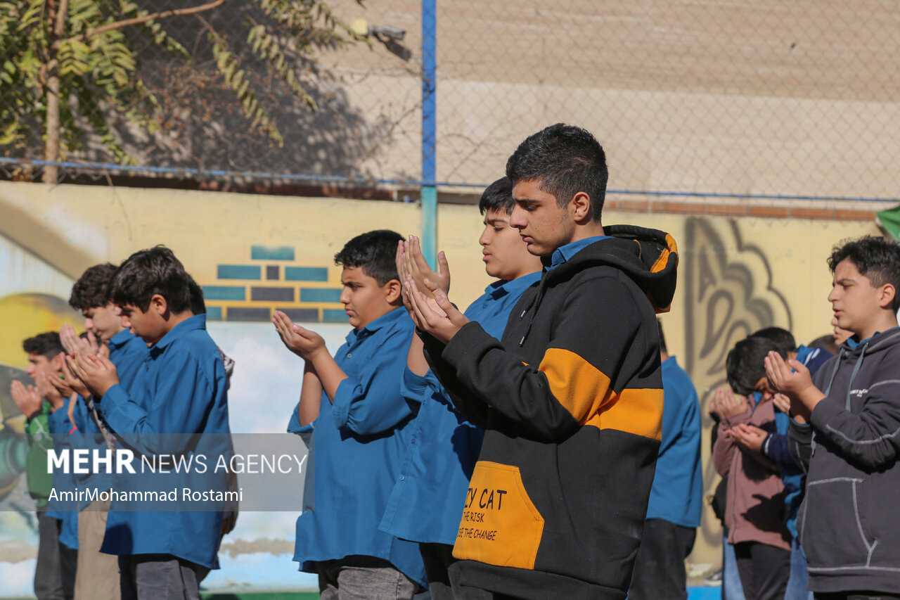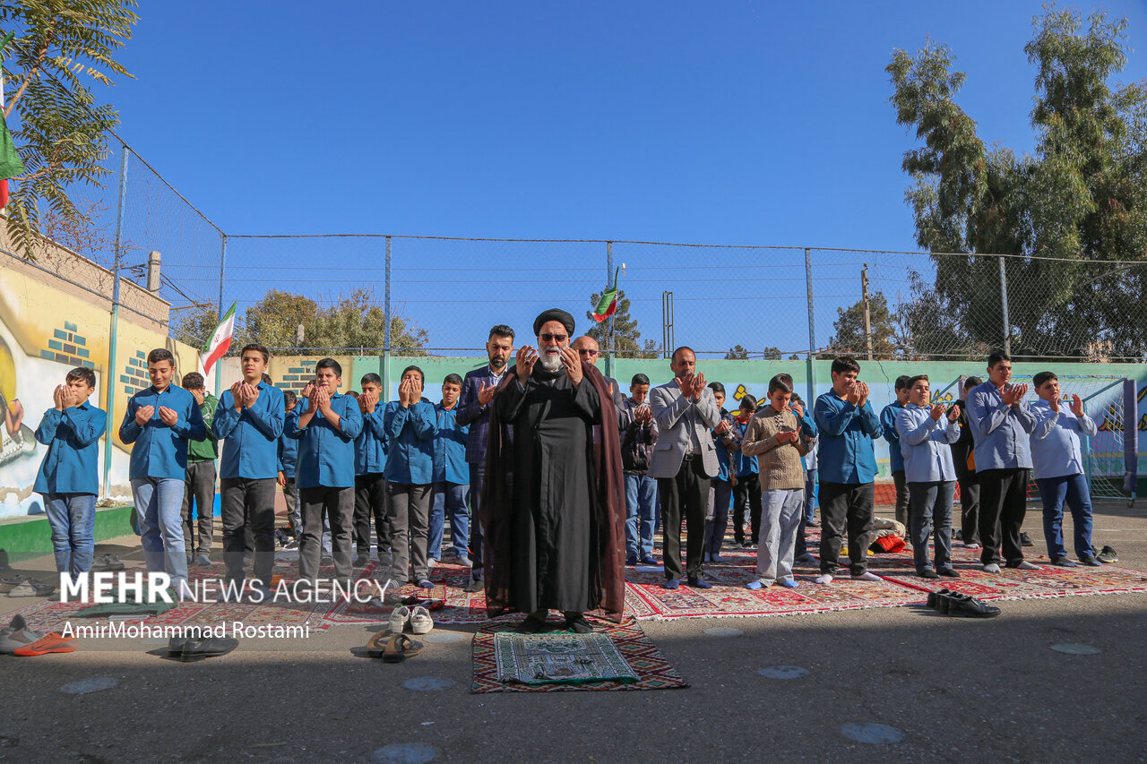 اقامه نماز باران توسط دانش آموزان مدرسه منتظرین شاهد در ورامین