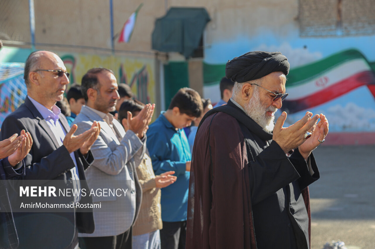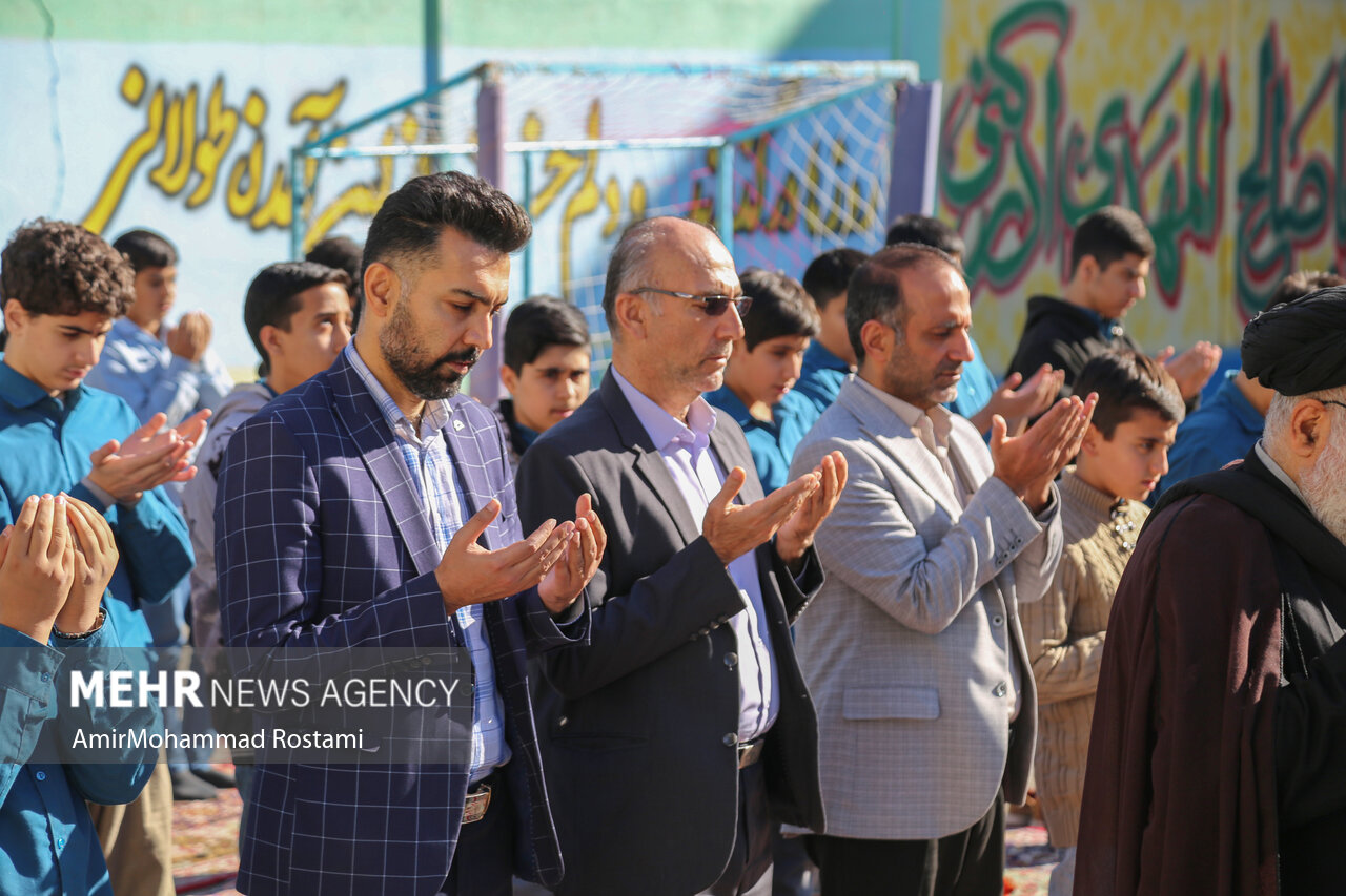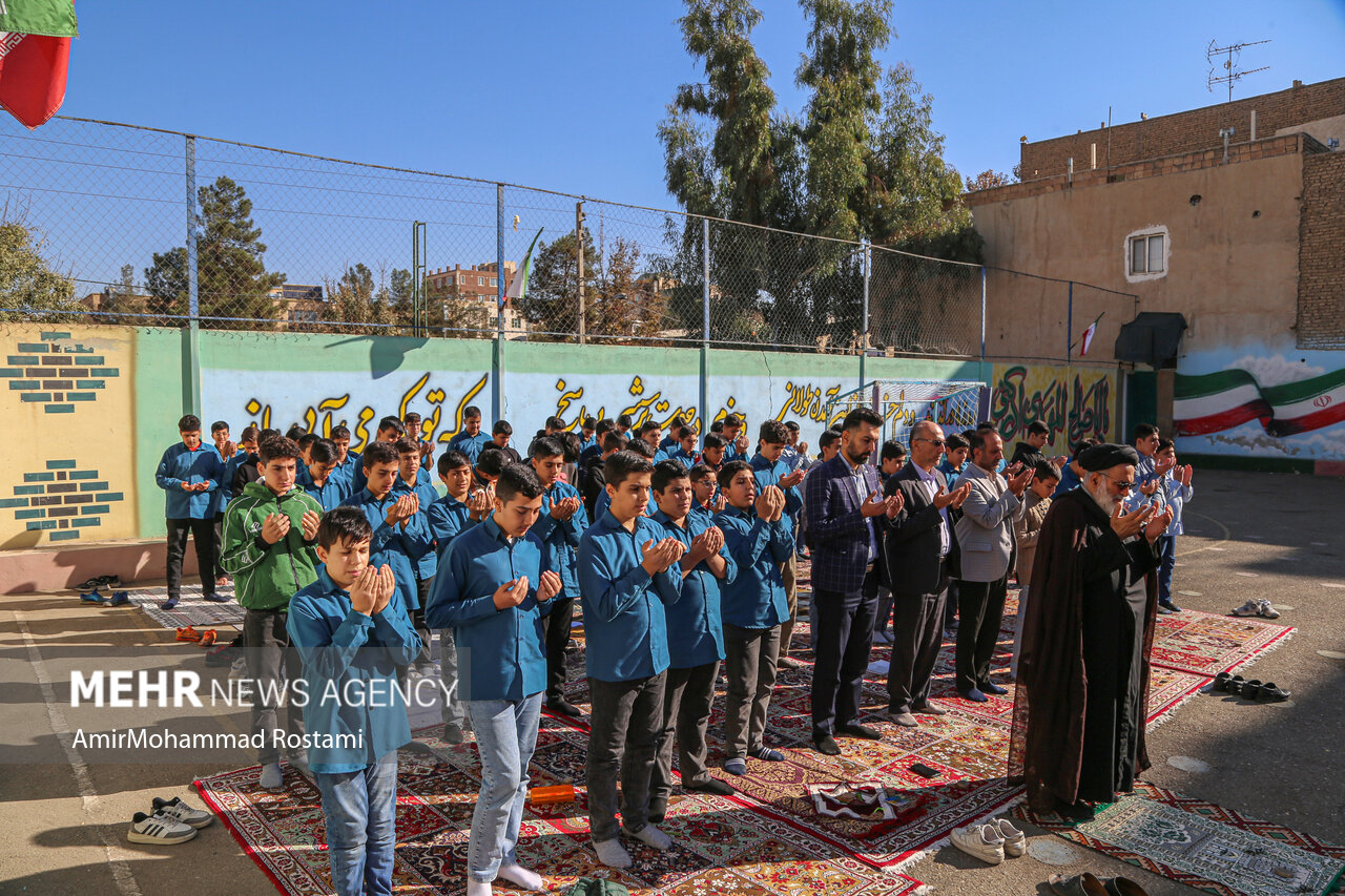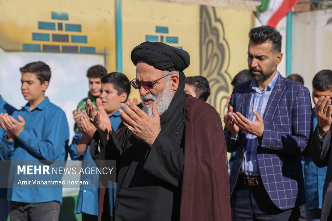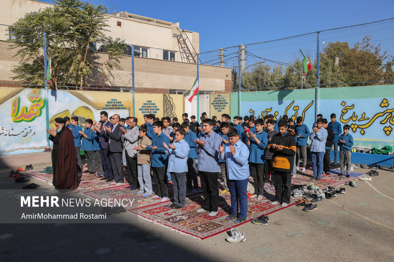 اقامه نماز باران توسط دانش آموزان مدرسه منتظرین شاهد در ورامین