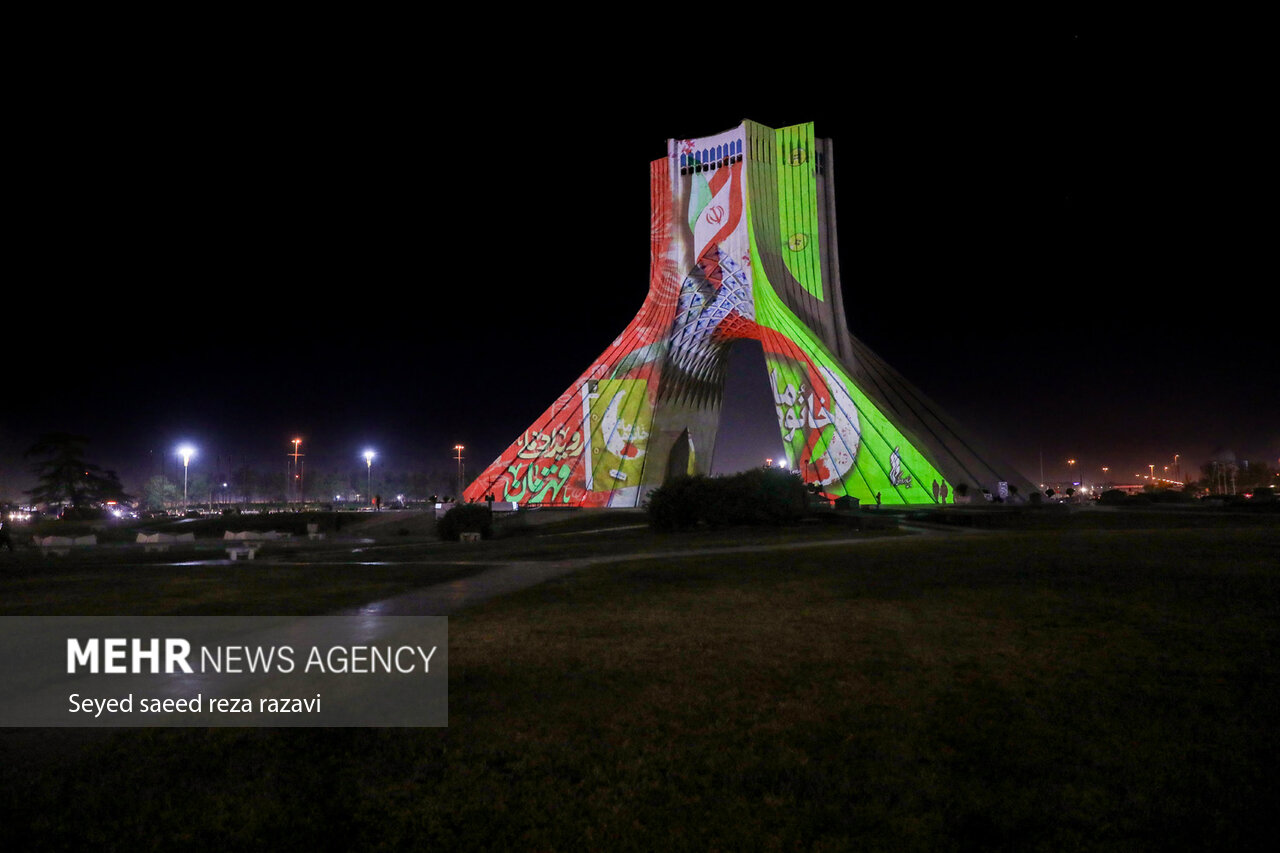 همزمان با «رویداد ملی قهرمان» و انتشار تقریظ‌های رهبر معظم انقلاب اسلامی بر سه کتاب «تب ناتمام»، «خانوم ماه» و «همسفر آتش و برف»، اجرای برنامه ویدئومپینگ (نورپردازی سه بعدی) شامگاه امروز سه شنبه ۲۷ آبان ماه ۱۴۰۴ در میدان آزادی تهران برگزار شد.
