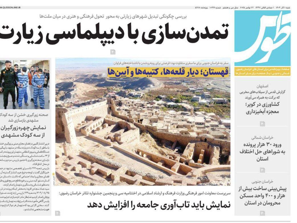 صفحه اول روزنامه های خراسان رضوی شنبه ۱ آذر