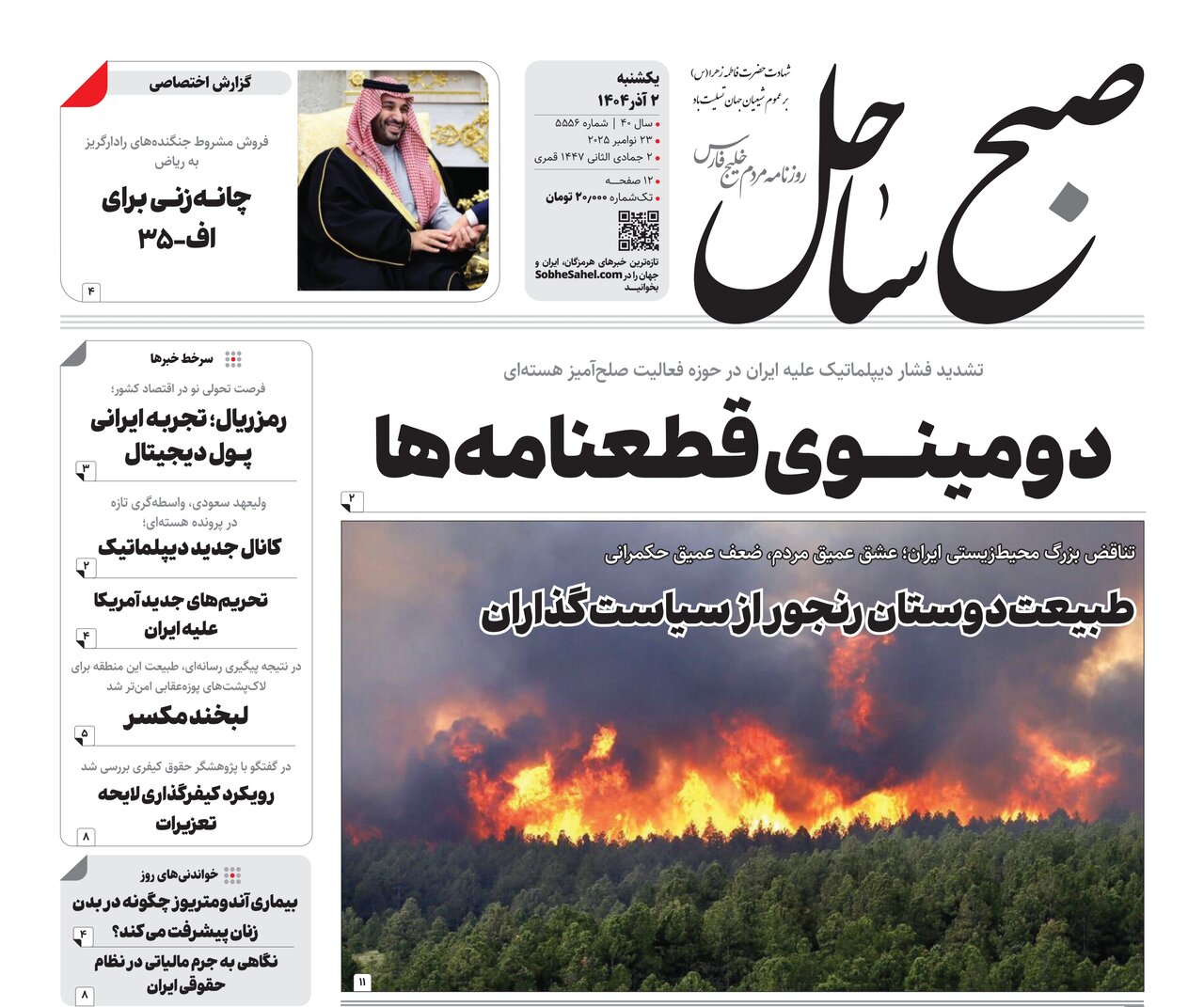 صفحه نخست روزنامه های هرمزگان ۲ آذرماه
