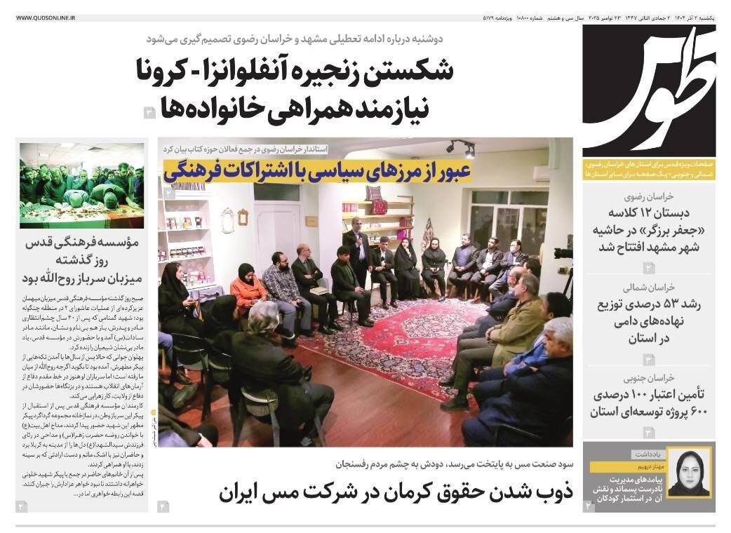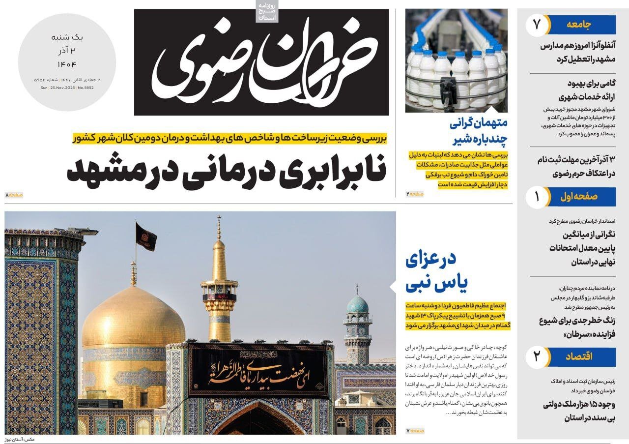 صفحه اول روزنامه های خراسان رضوی ۲ آذر ۱۴۰۴