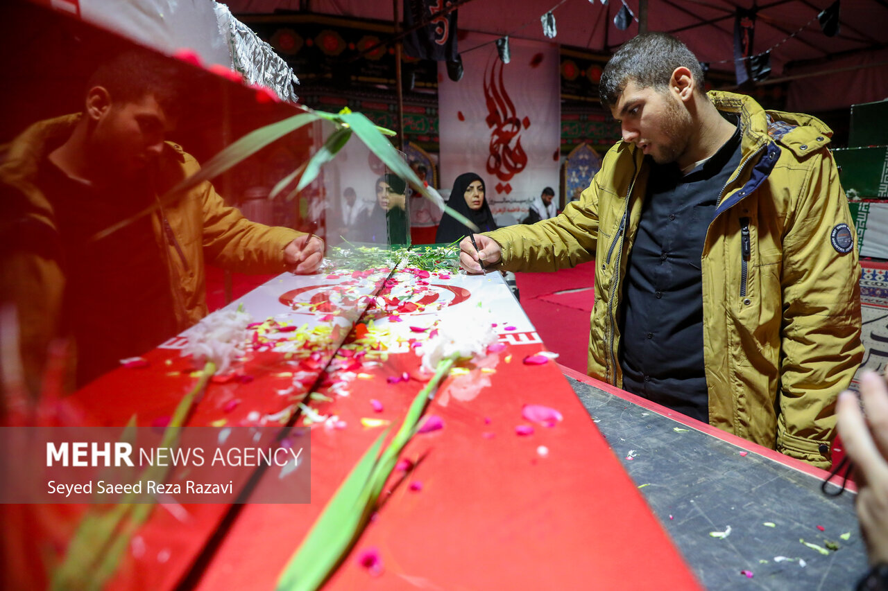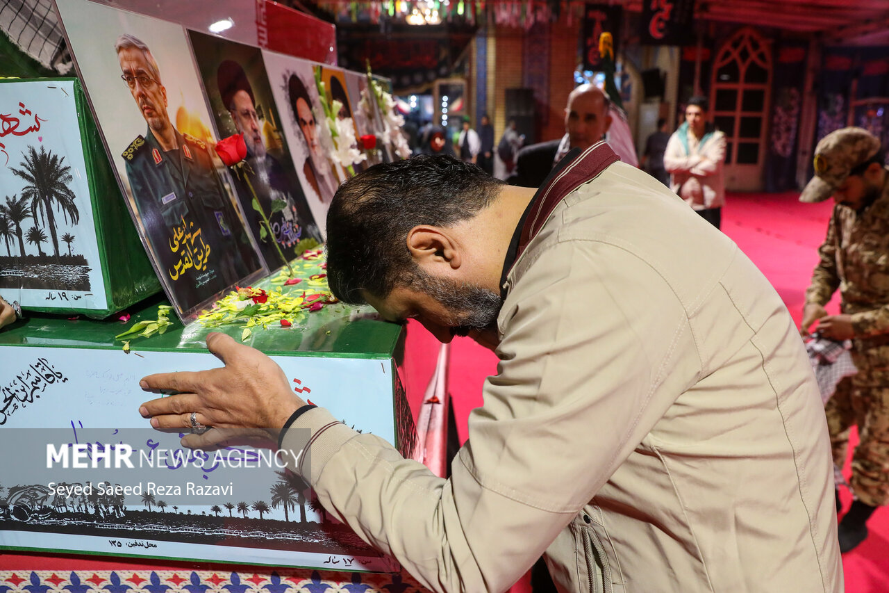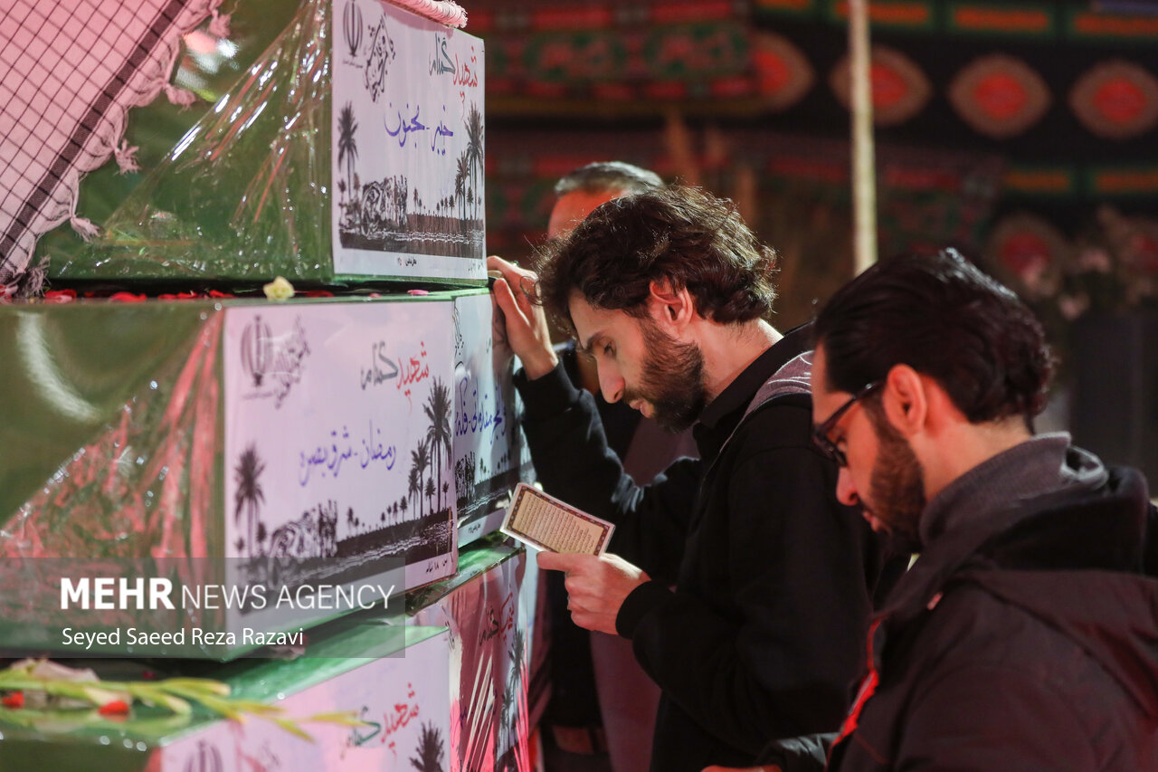 مراسم وداع با پیکرهای ۱۰۰ شهید گمنام دوران دفاع مقدس، شامگاه شنبه ۲ آذر ماه ۱۴۰۴ در موزه ملی انقلاب اسلامی، دفاع مقدس و مقاومت برگزار شد.