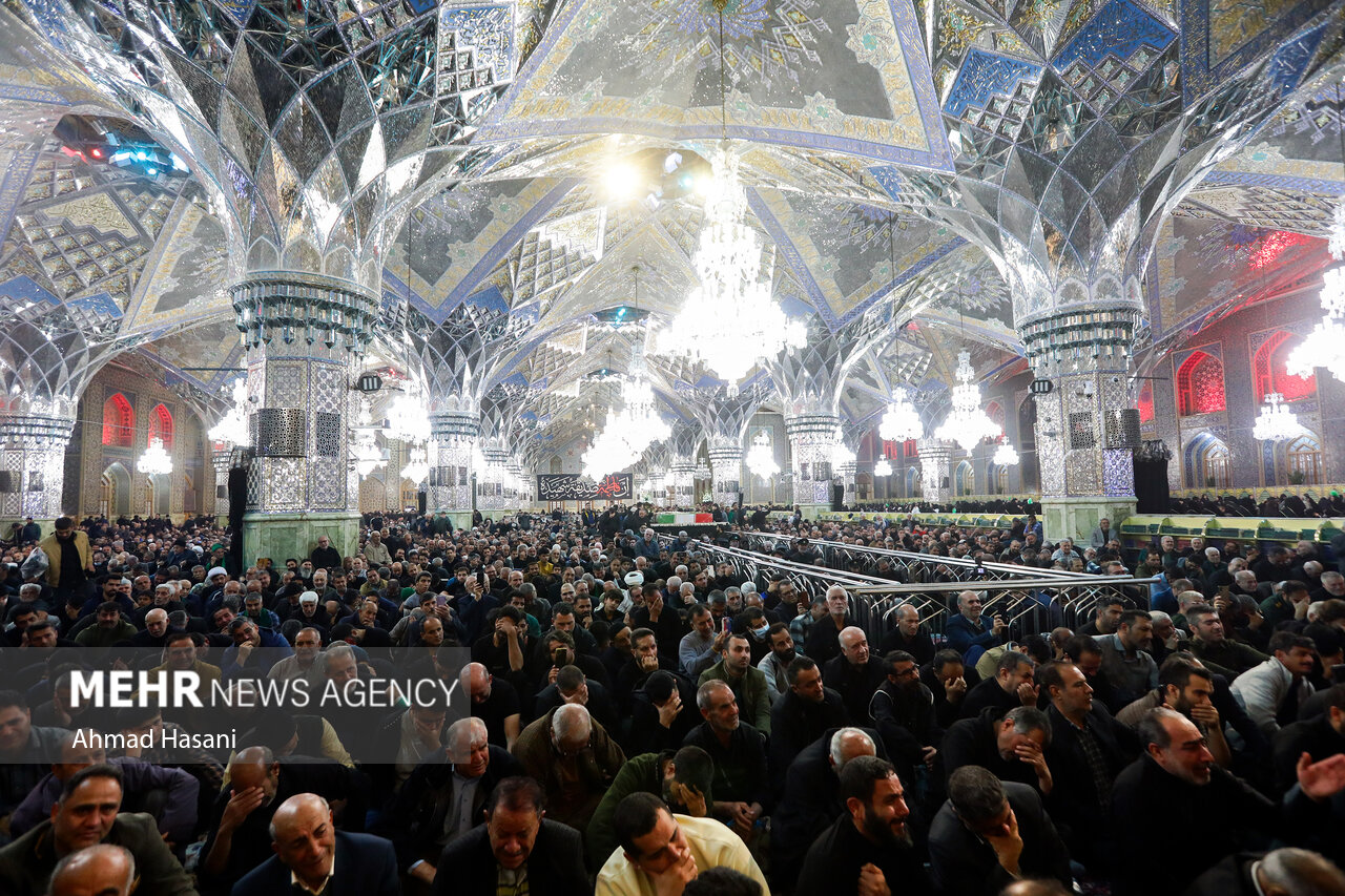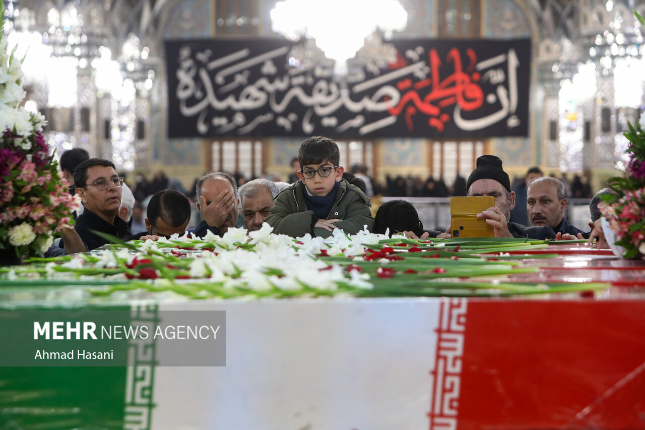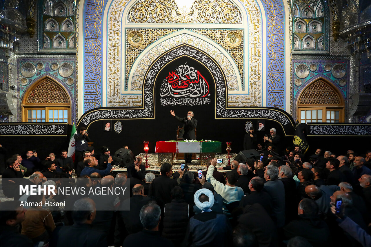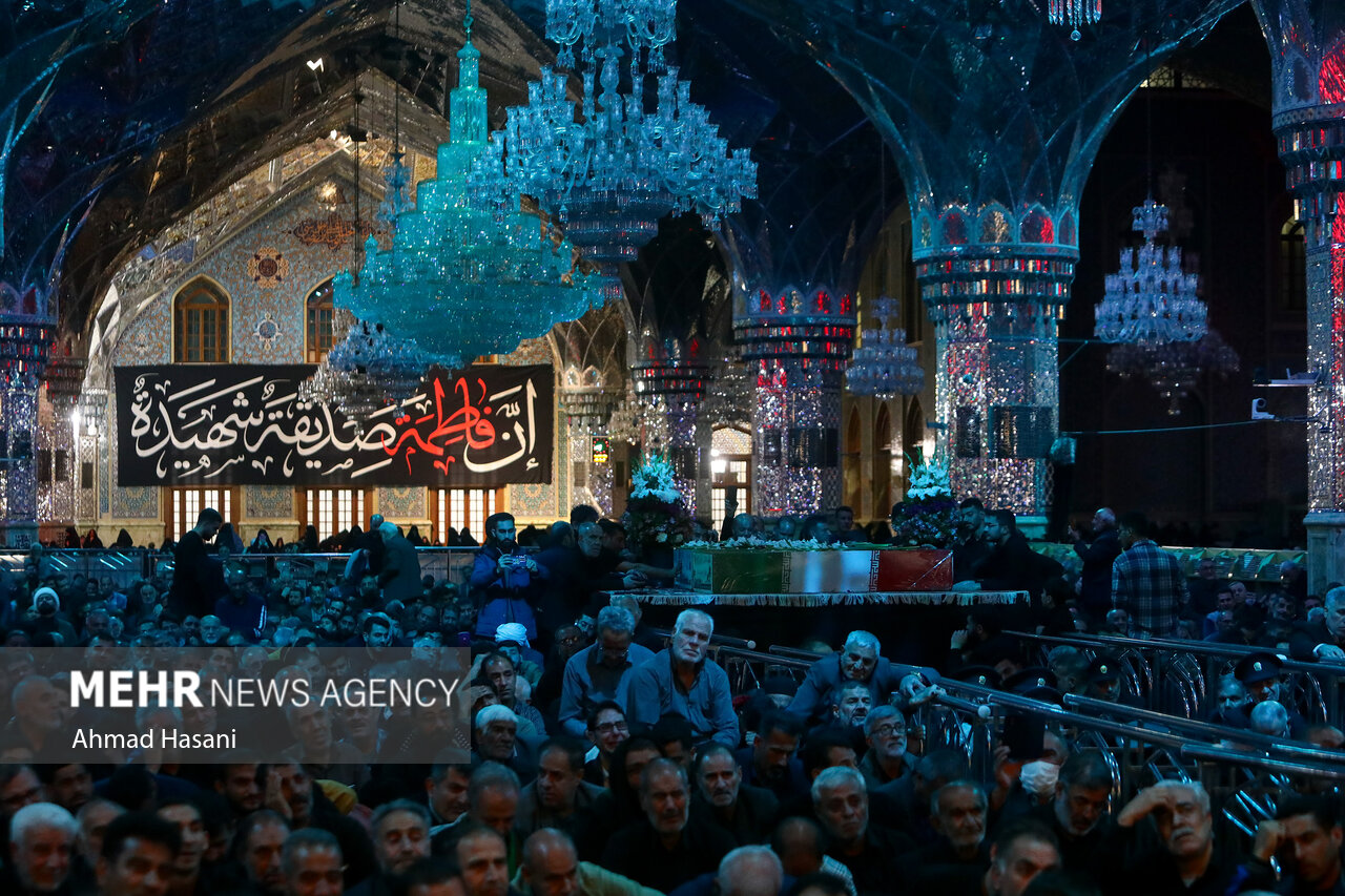 مراسم عزاداری شب شهادت حضرت فاطمه (س) به همراه وداع با پیکر ۱۲ شهید گمنام دفاع مقدس، شامگاه یکشنبه ۲ آذر ۱۴۰۴ در رواق امام خمینی (ره) حرم مطهر رضوی برگزار شد.