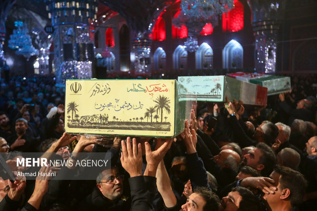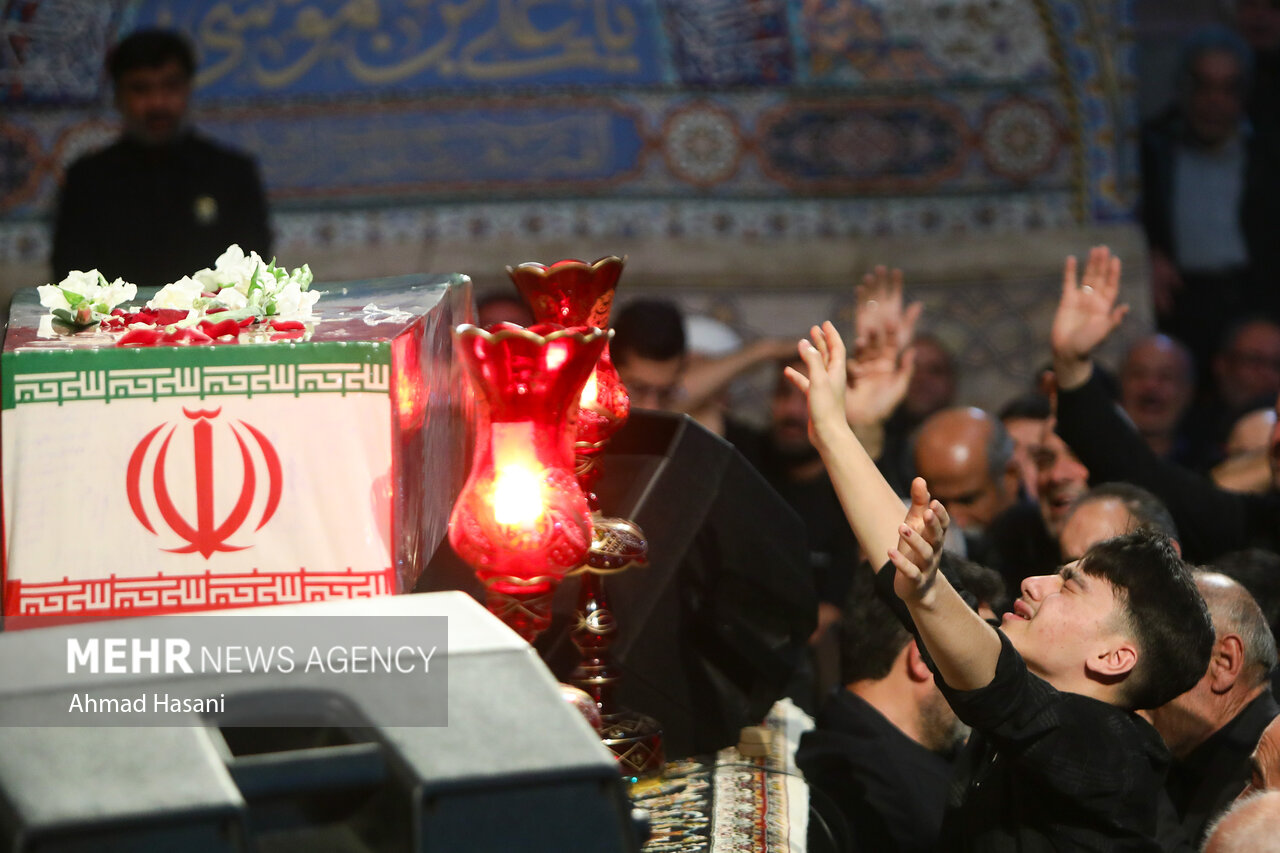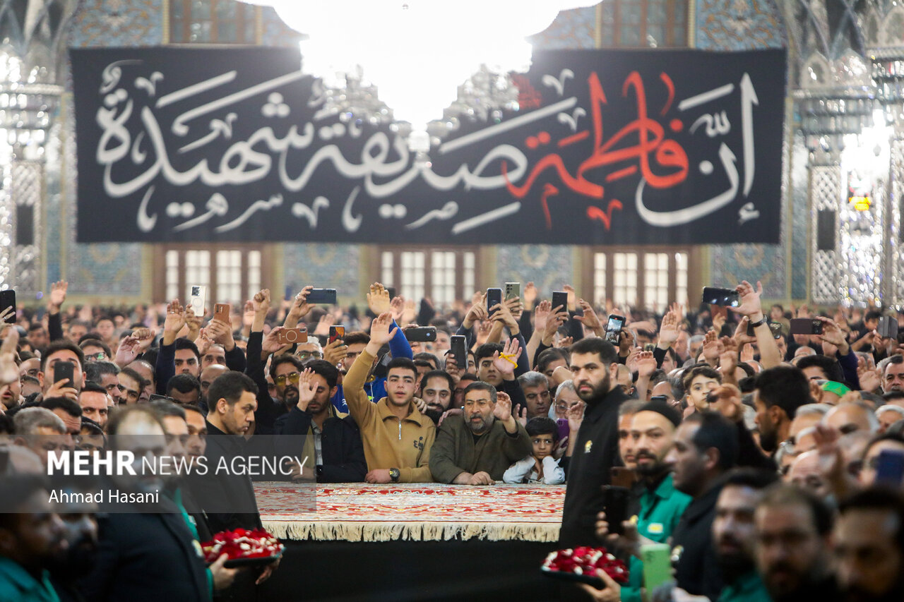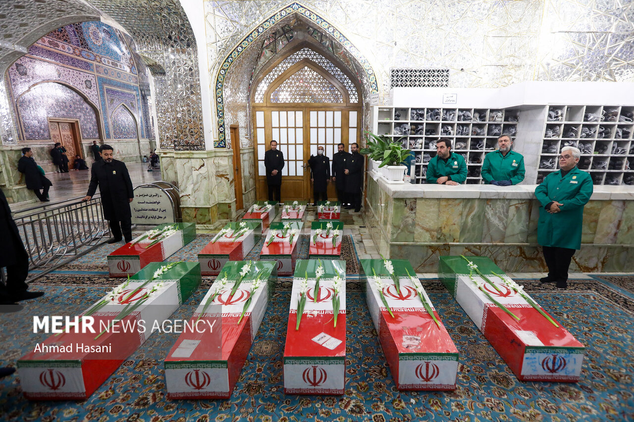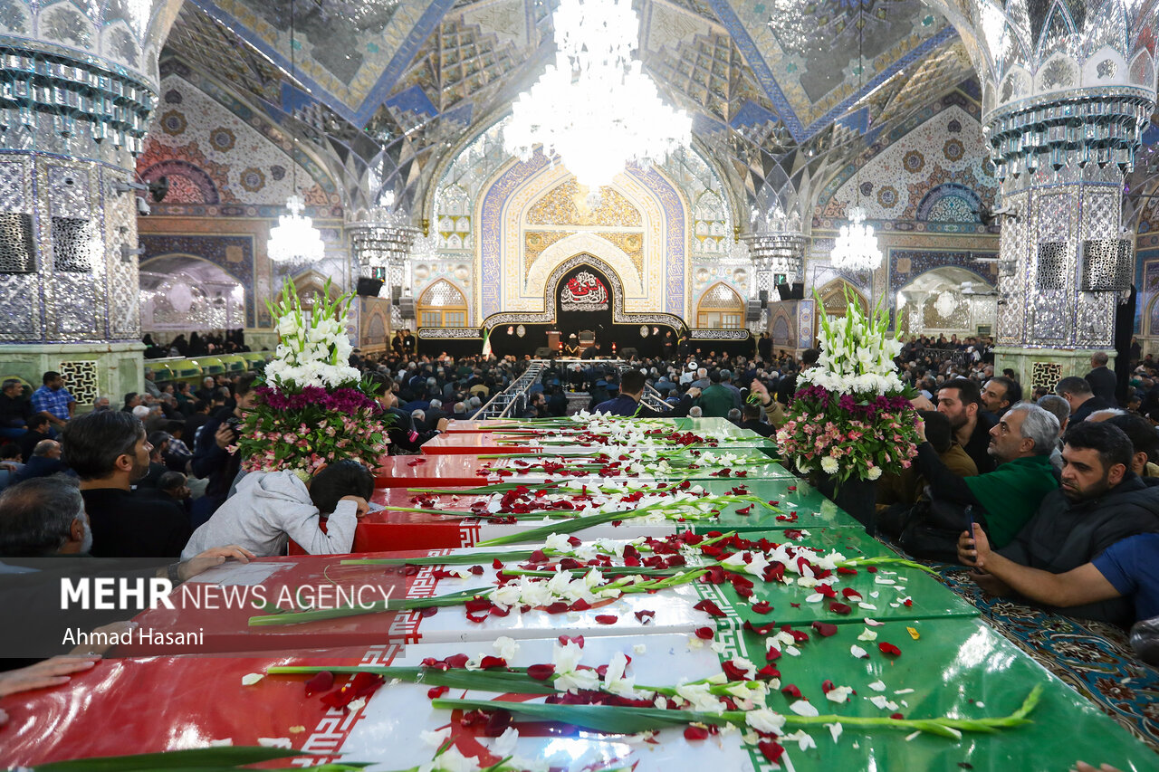مراسم عزاداری شب شهادت حضرت فاطمه (س) به همراه وداع با پیکر ۱۲ شهید گمنام دفاع مقدس، شامگاه یکشنبه ۲ آذر ۱۴۰۴ در رواق امام خمینی (ره) حرم مطهر رضوی برگزار شد.