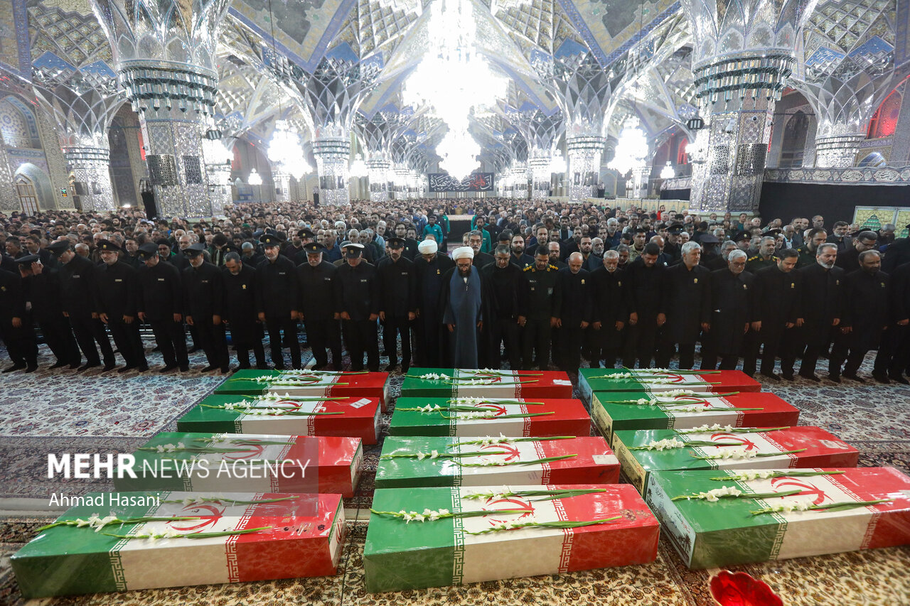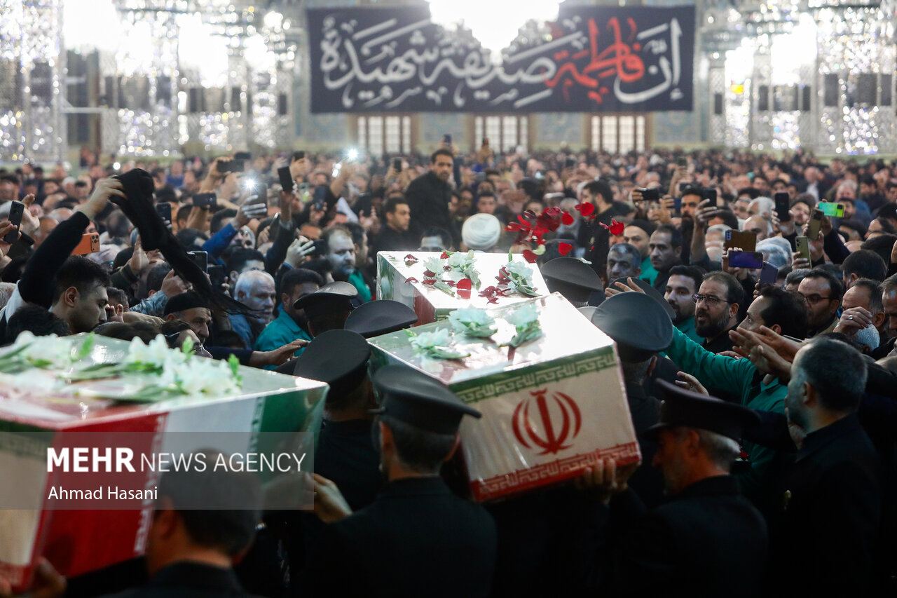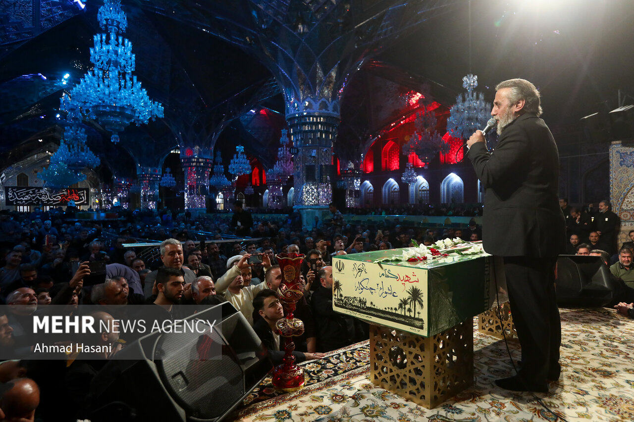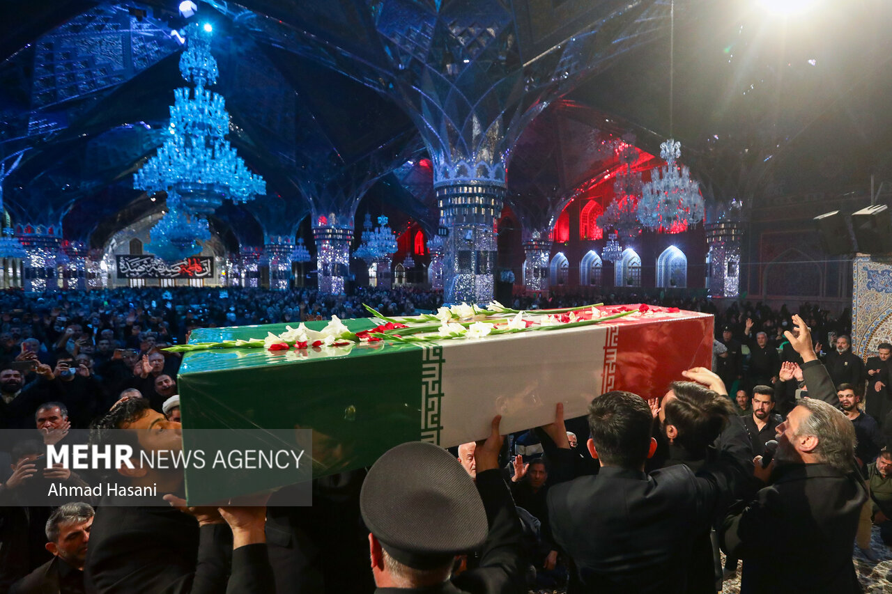 مراسم عزاداری شب شهادت حضرت فاطمه (س) به همراه وداع با پیکر ۱۲ شهید گمنام دفاع مقدس، شامگاه یکشنبه ۲ آذر ۱۴۰۴ در رواق امام خمینی (ره) حرم مطهر رضوی برگزار شد.