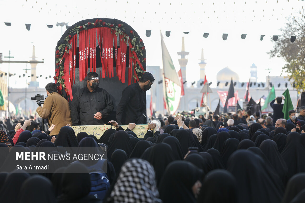 مراسم تشییع پیکر ۱۳ شهید گمنام دفاع مقدس، صبح دوشنبه ۳ آذر ۱۴۰۴ با حضور اقشار مختلف مردم مشهد، از میدان شهدا تا حرم مطهر رضوی برگزار شد.