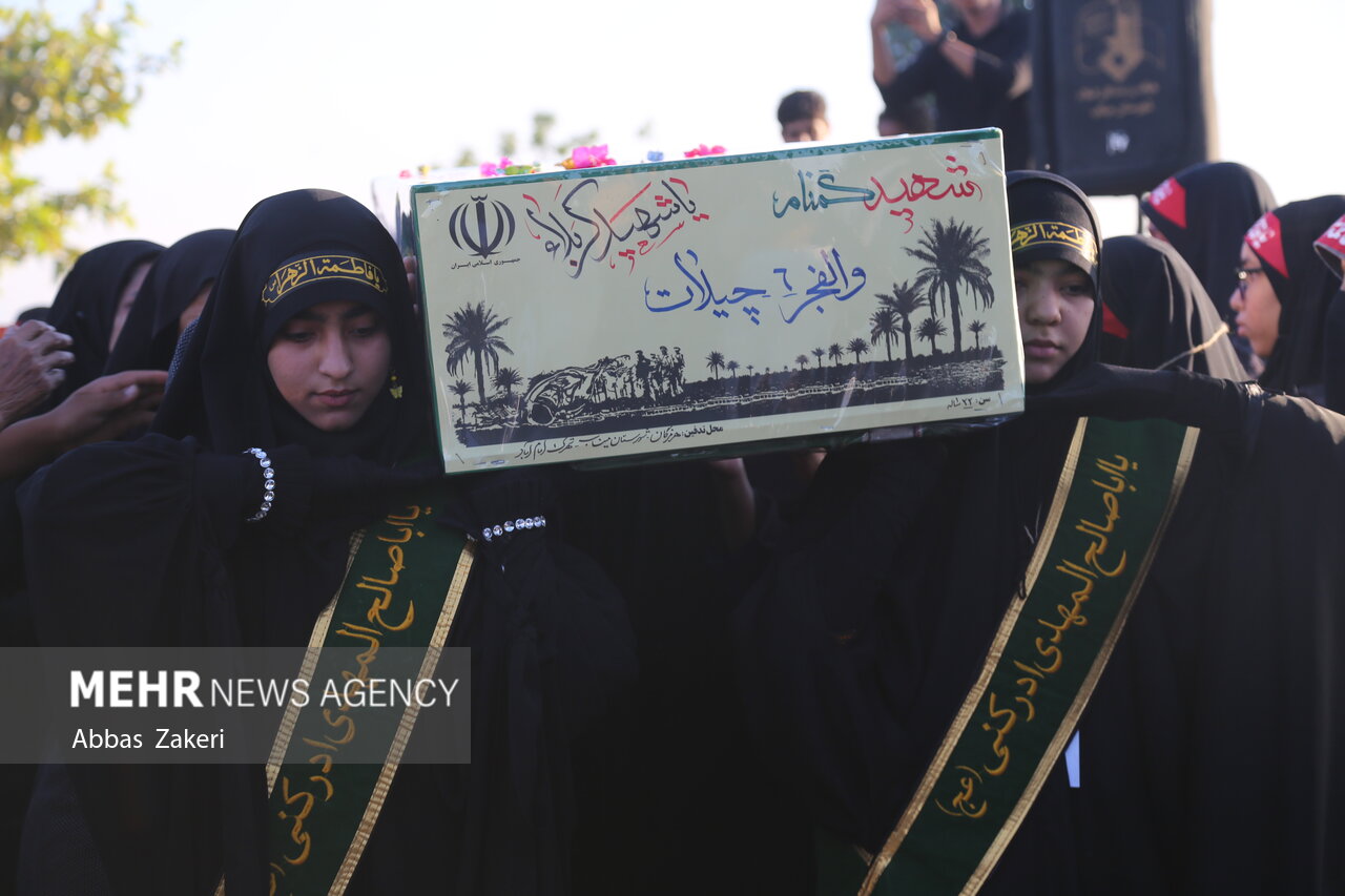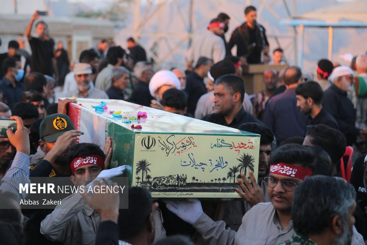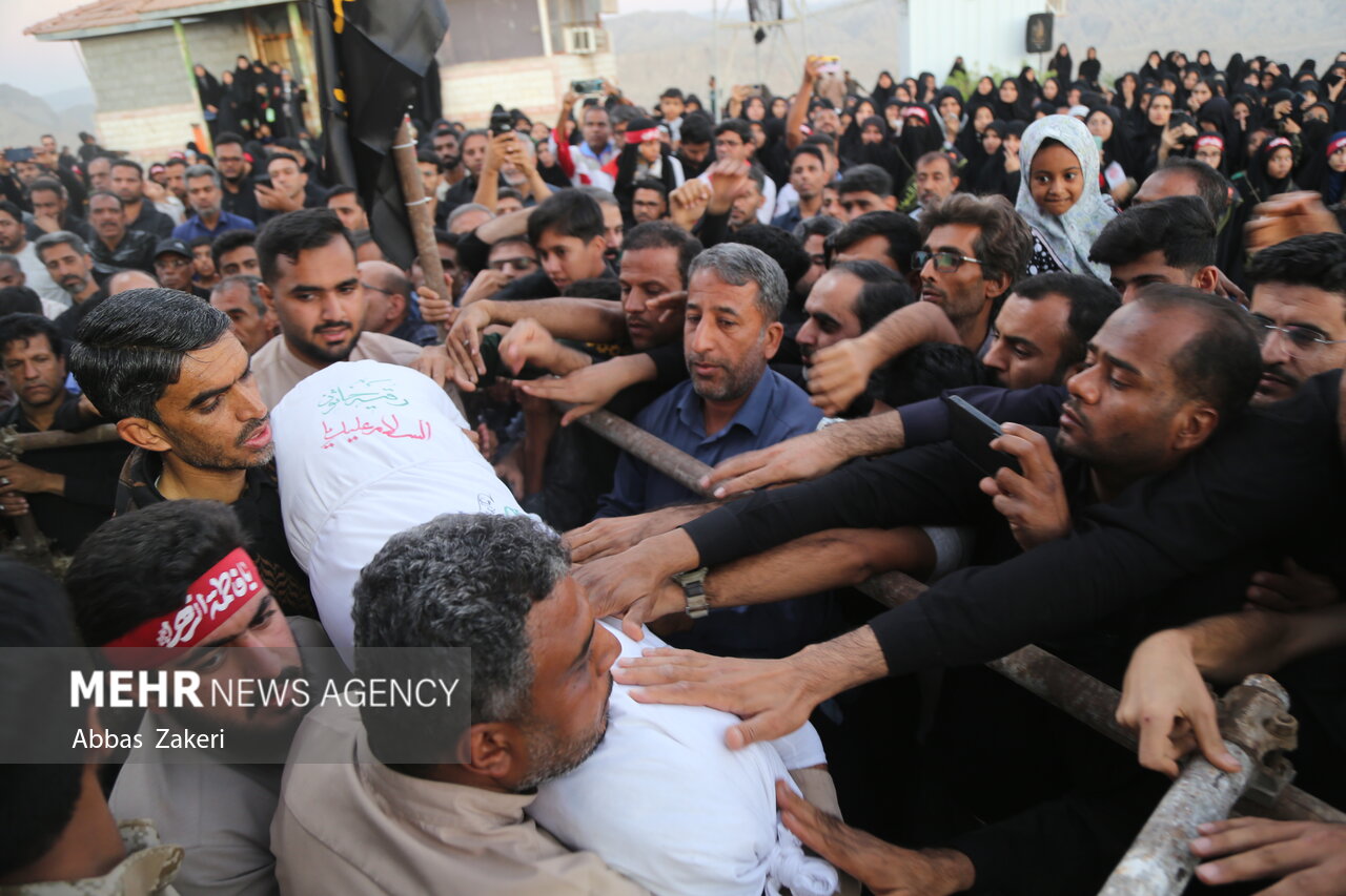 همزمان با شهادت حضرت فاطمه زهرا (س) شهید خوشنام بر دستان مردم میناب تشییع و در کوهستان بام میناب به خاک سپرده شد.