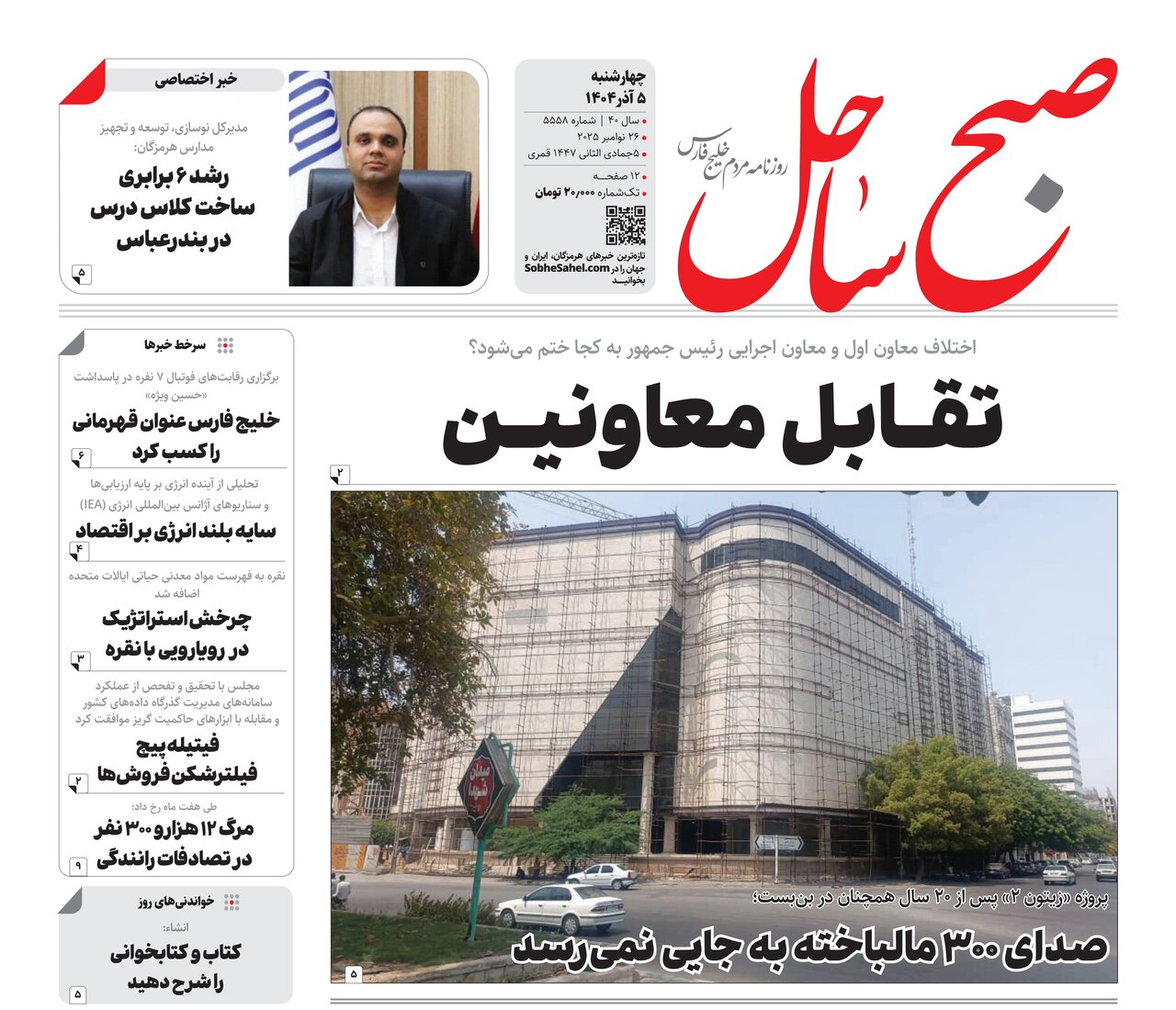 صفحه نخست روزنامه های استان هرمزگان روز ۵ آذرماه