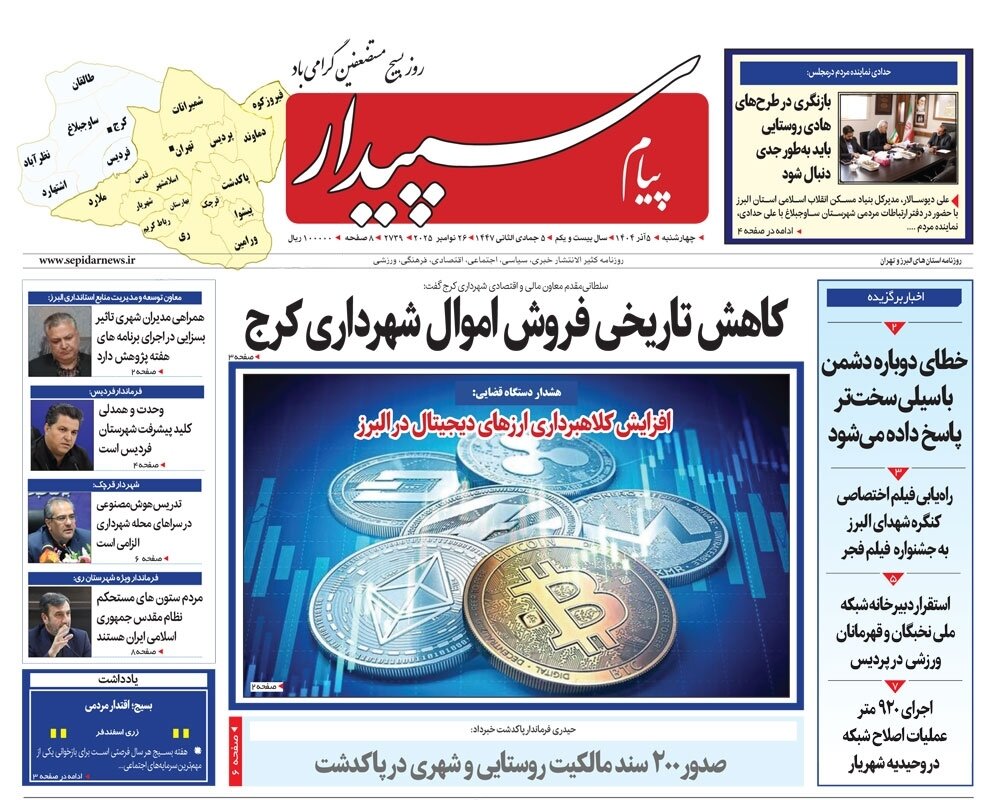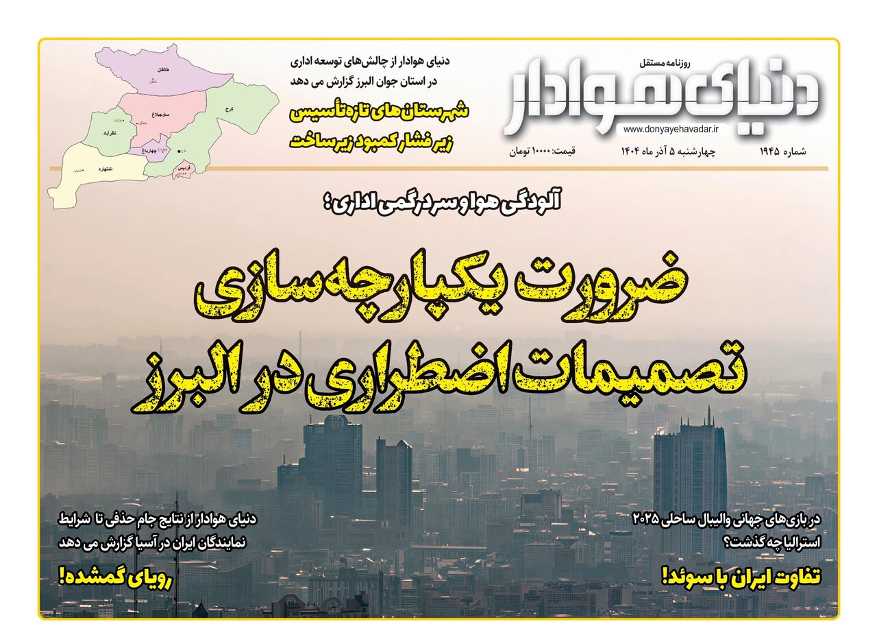 صفحه اول روزنامه‌های استان البرز چهارشنبه ۵ آذر ماه