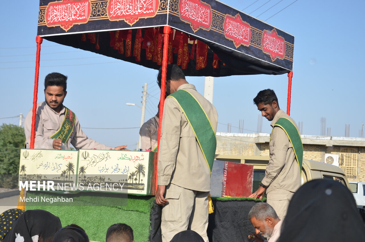 شهید گمنام در محلات رودان هرمزگان بر دستان مردم تشییع شد.