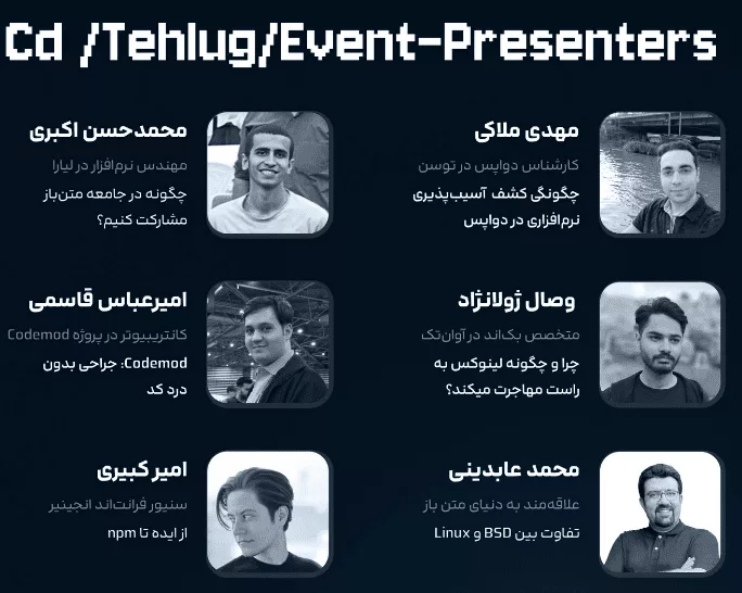 این رویداد شامل مجموعهای از ارائههای تخصصی و برنامههای عملی است که شرکتکنندگان را با جنبههای مختلف نرمافزار آزاد و لینوکس آشنا میکند. سخنرانان برنامه به تفکیک موضوعات به شرح زیر است: