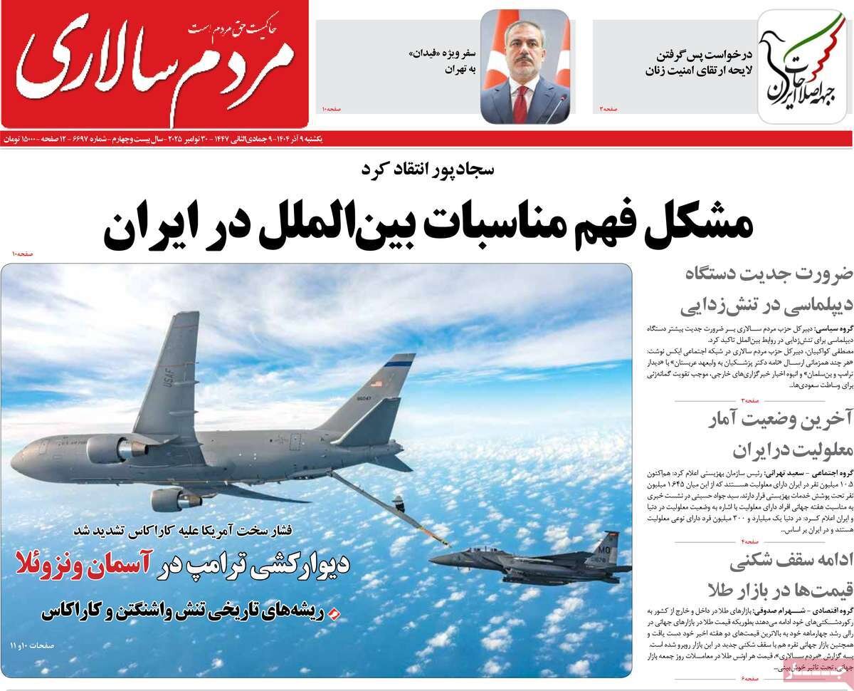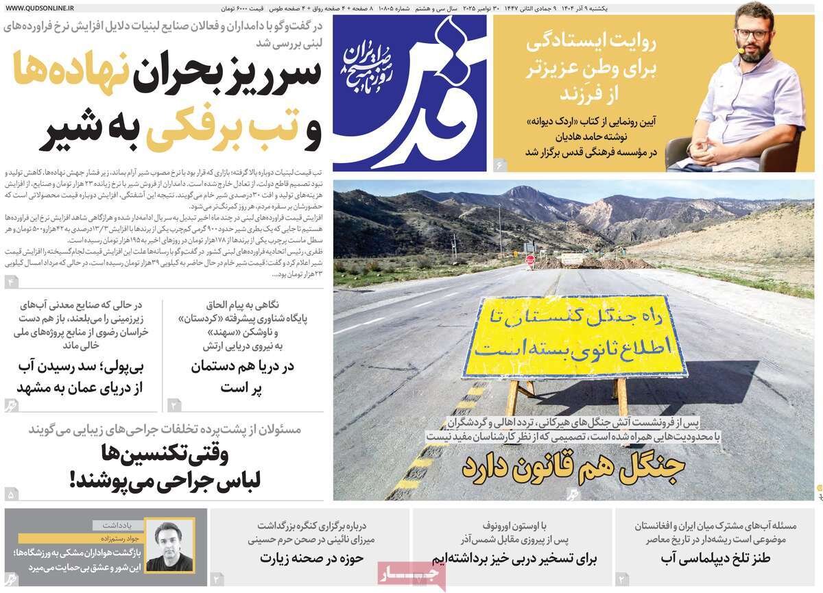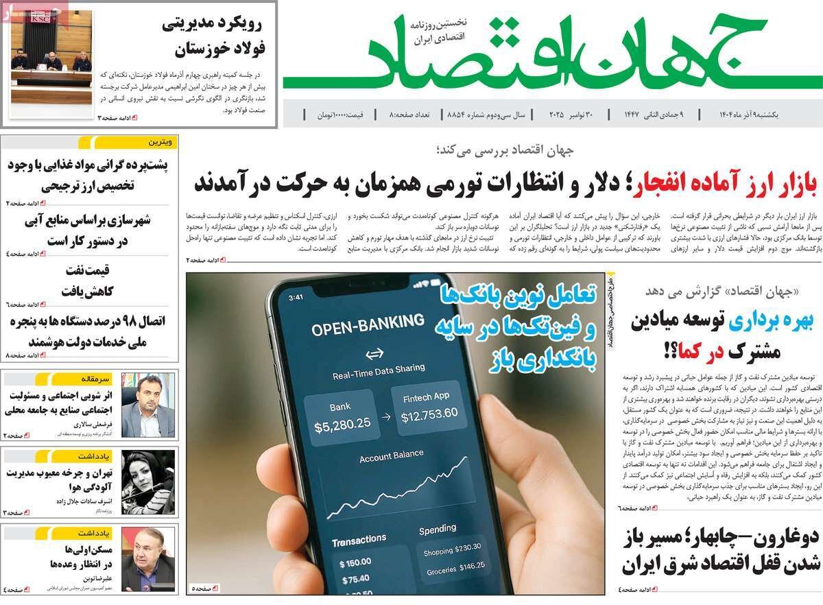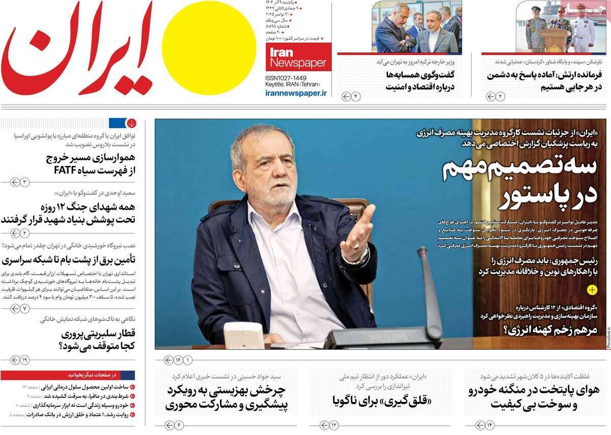 صفحه اول روزنامه های یکشنبه 9 آذر 1404