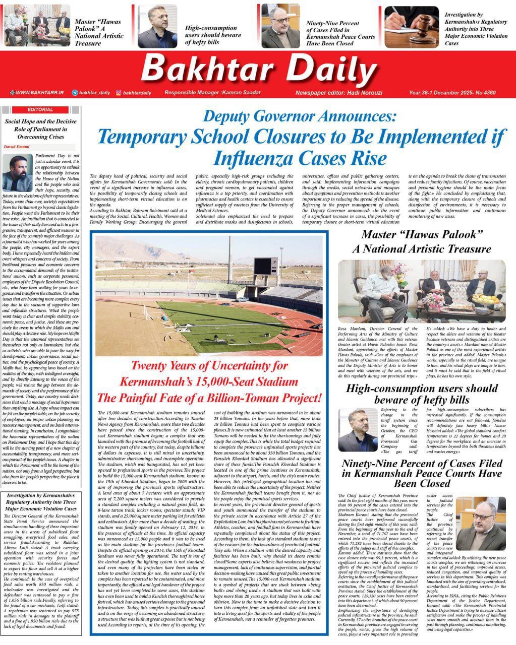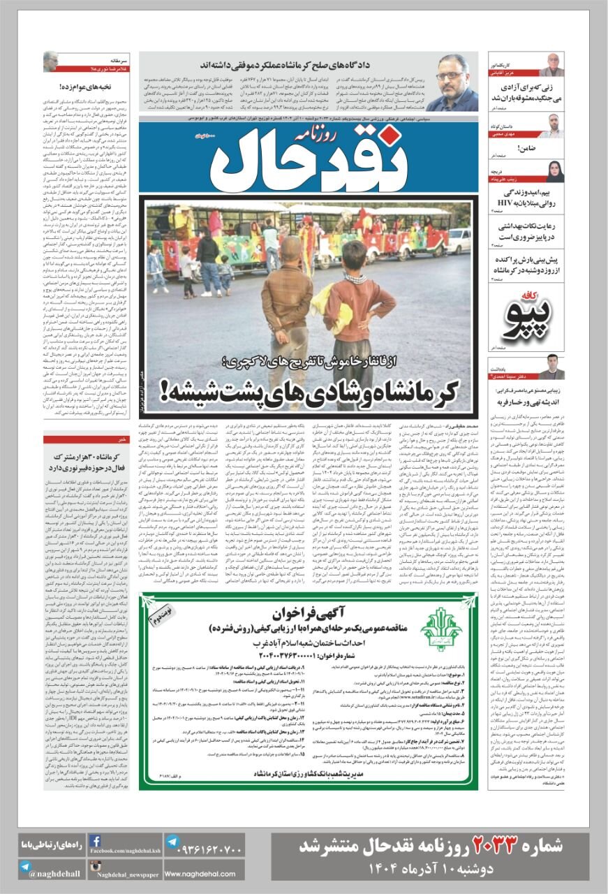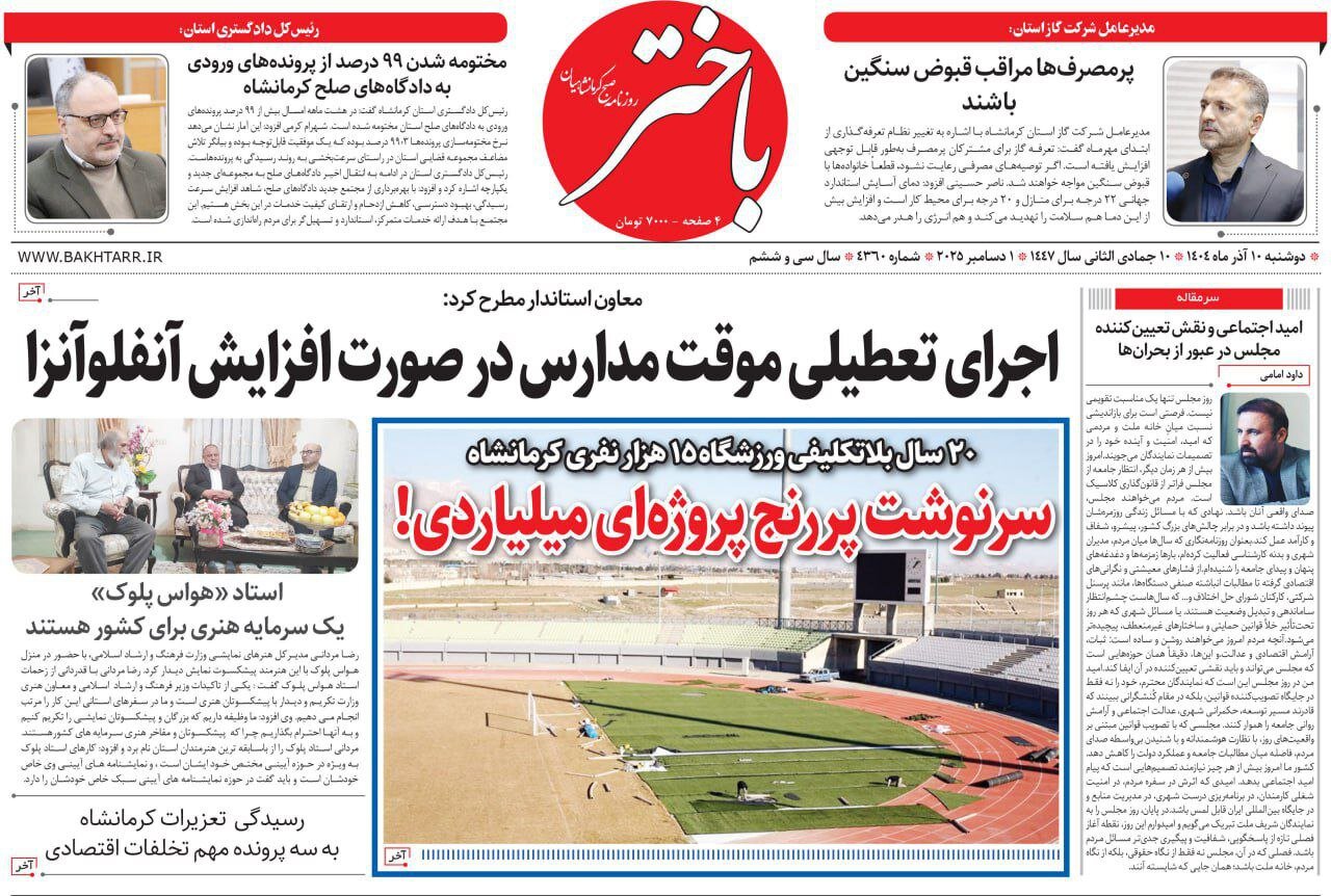 صفحه اول روزنامه‌های کرمانشاه دوشنبه دهم آذرماه