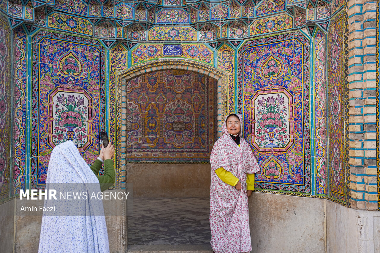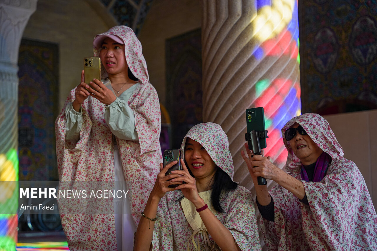 حضور گردشگران خارجی در مسجد نصیرالملک شیراز