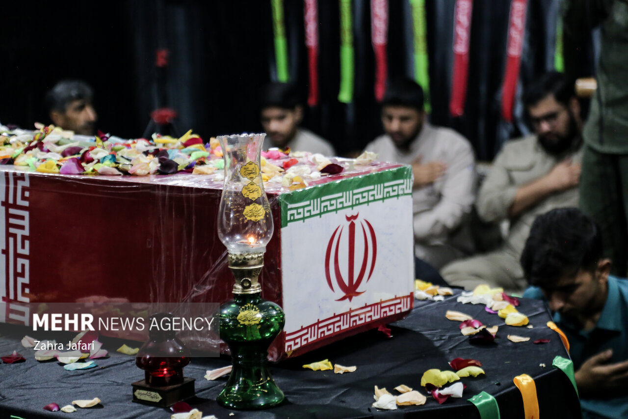 یک شهید گمنام هشت سال دفاع مقدس بر روی دستان دانشجویان دانشکده علوم قرآنی بندرعباس تشییع شد.