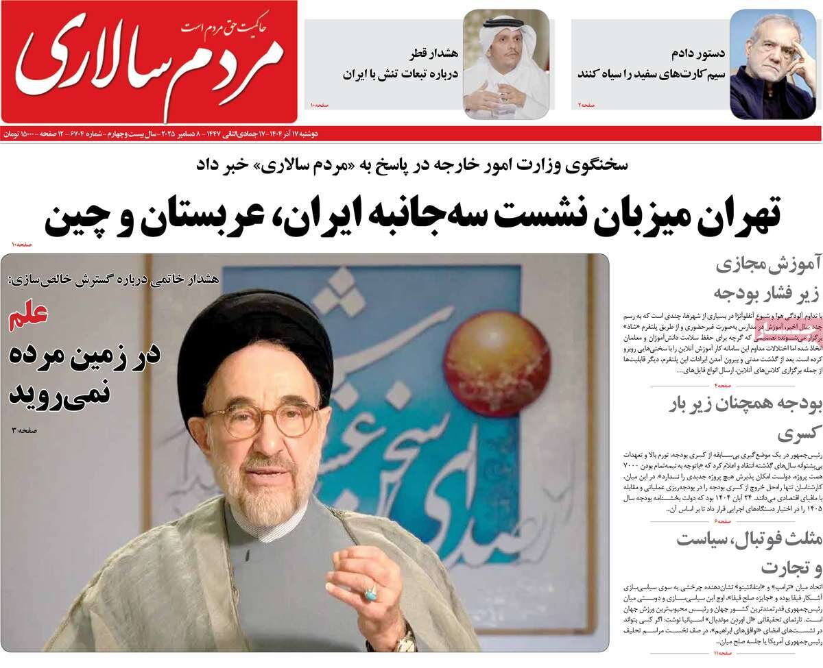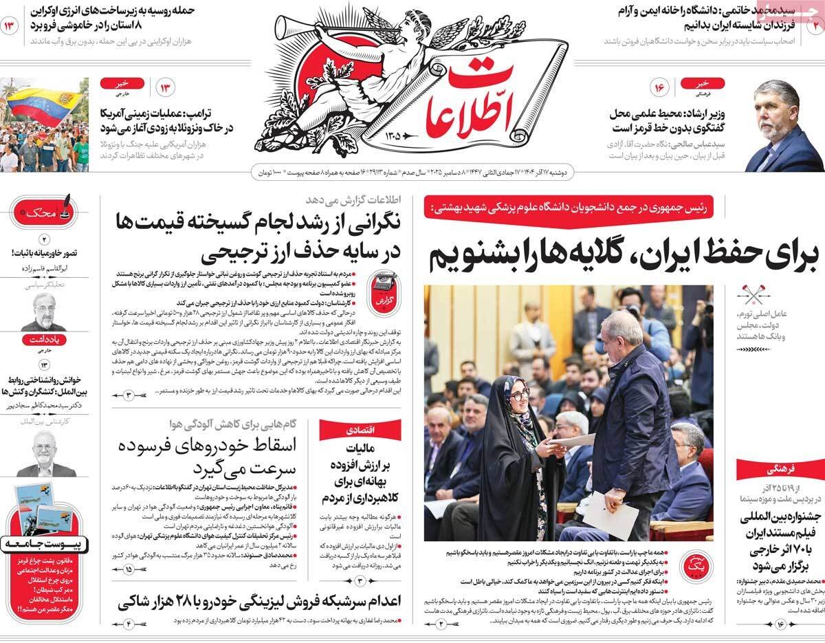 سخنرانی رئیس جمهور و رئیس قوه قضاییه در مراسم 16 آذر تیتر اصلی مطبوعات امروز است.