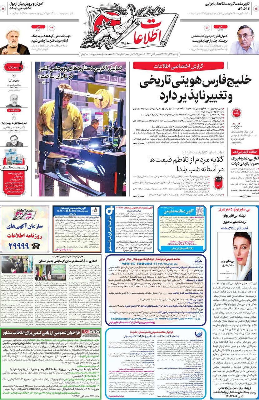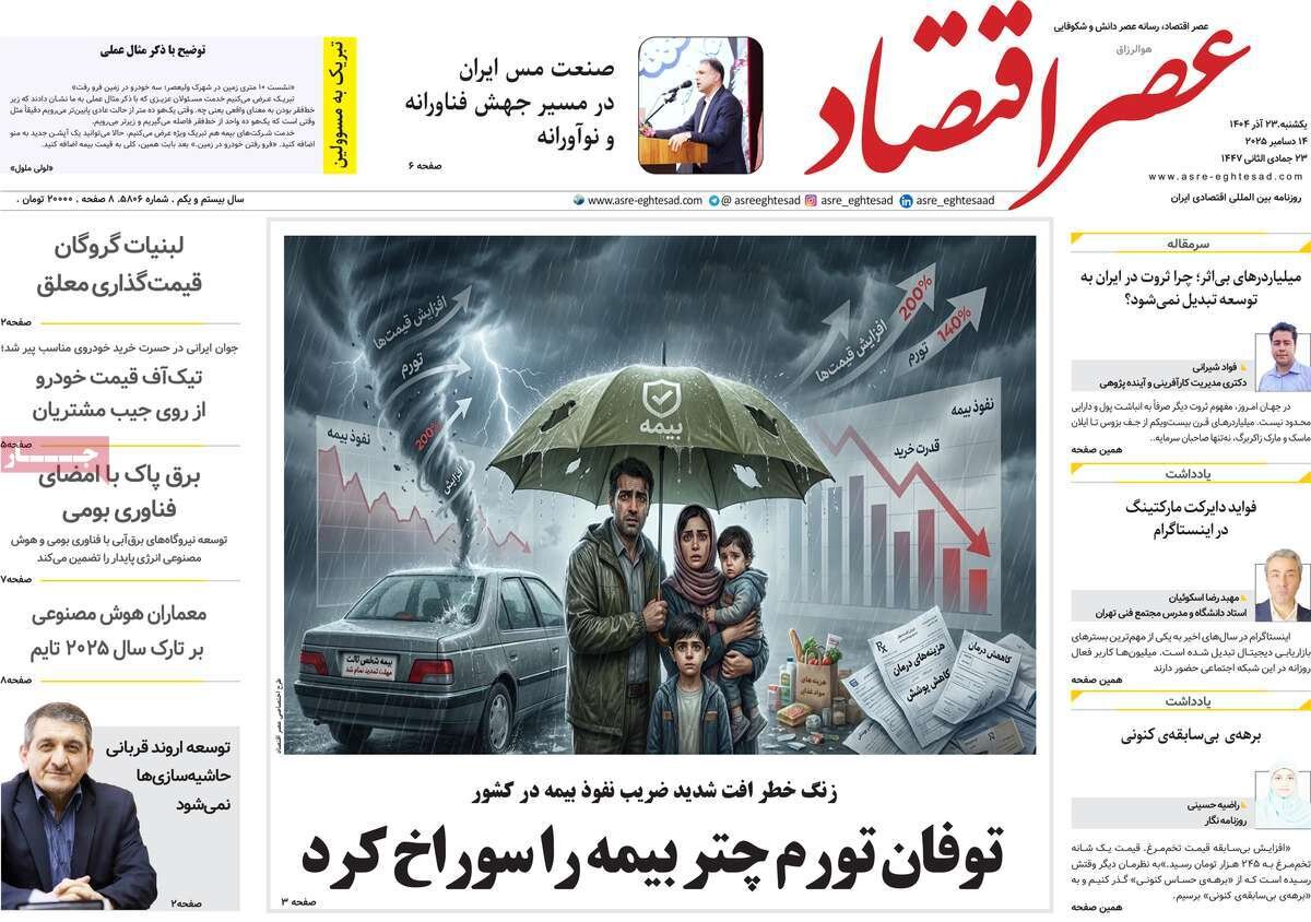 صفحه اول روزنامه های یکشنبه 23آذر / روز آرام گران شدن بنزین